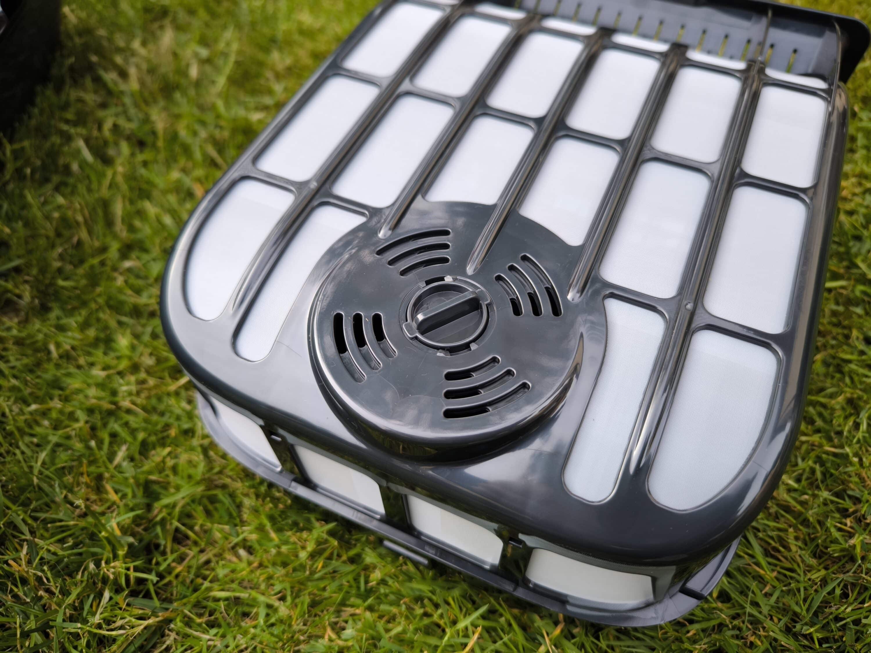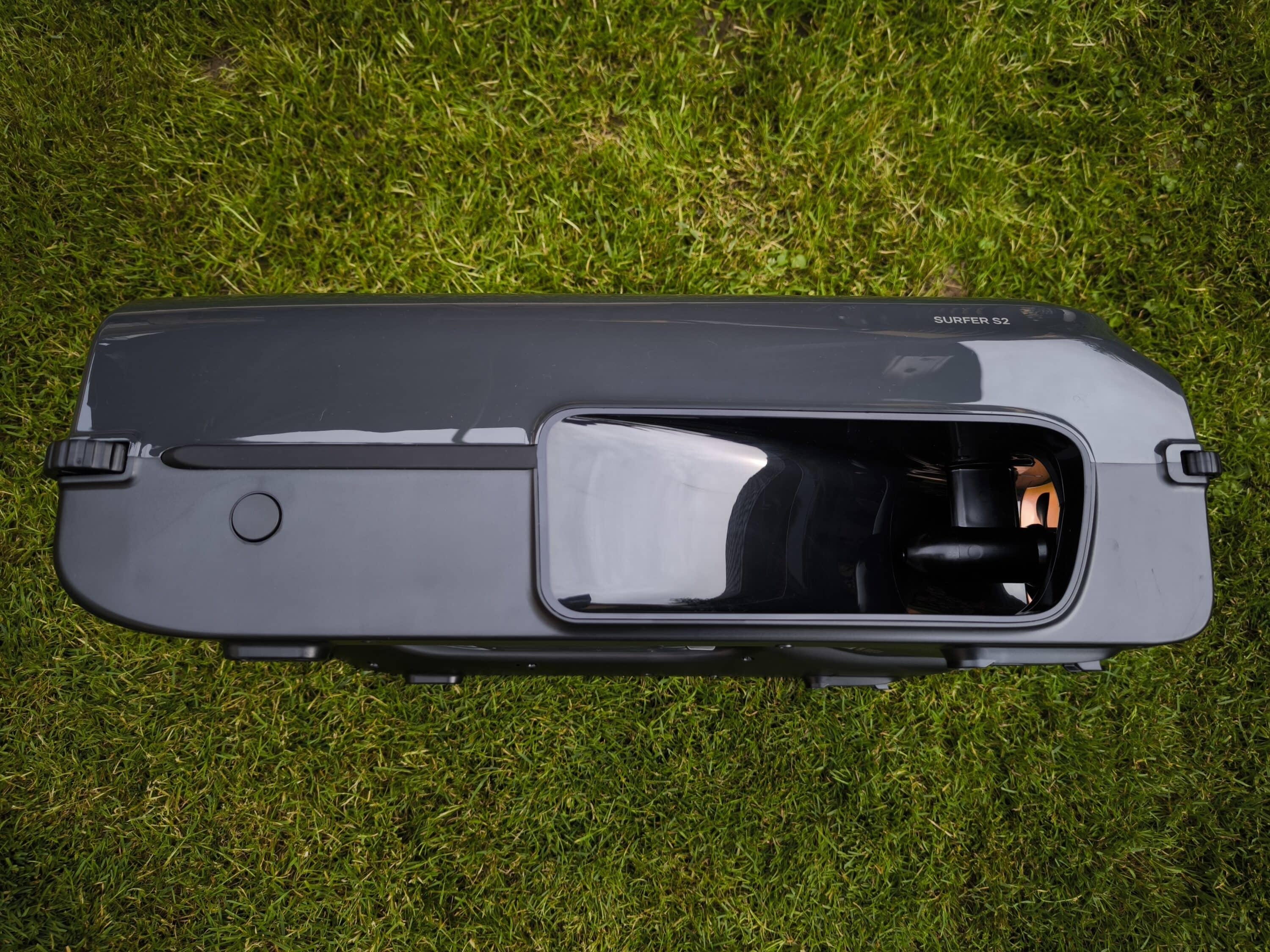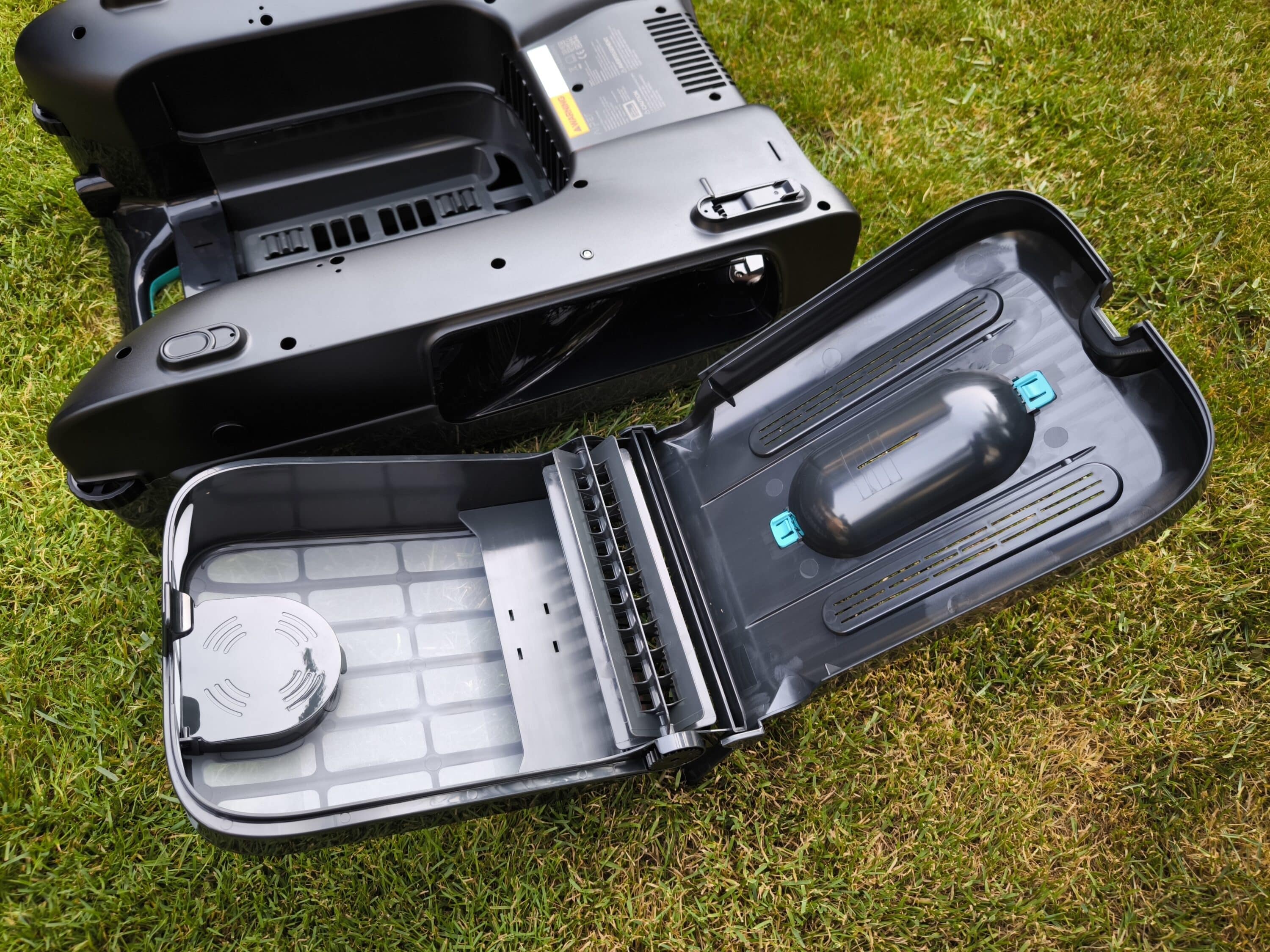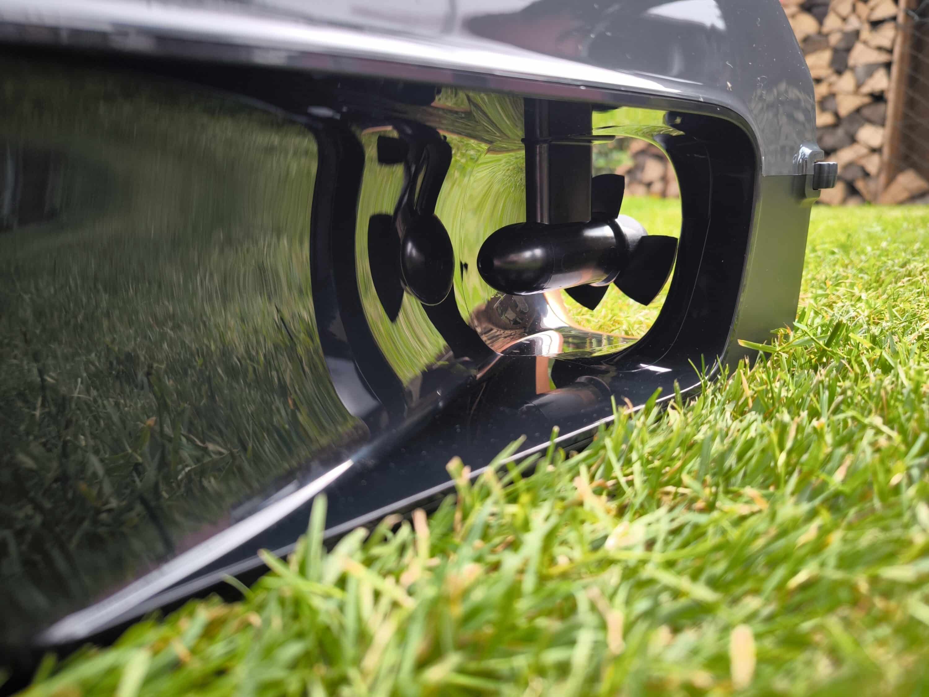 Let’s get to the hard facts of the AIPER Surfer S2, in other words: What can this thing do? The large solar panel has remained unchanged, but unlike its predecessor, it no longer has a cut-out in the middle. With the Surfer S1, the entire deck could be pushed back to access the filter basket. This feature is no longer available on the new model, as the filter basket can now be removed from the front. There are still three brushless motors. Two of them are used to drive the propellers and one for the impeller.