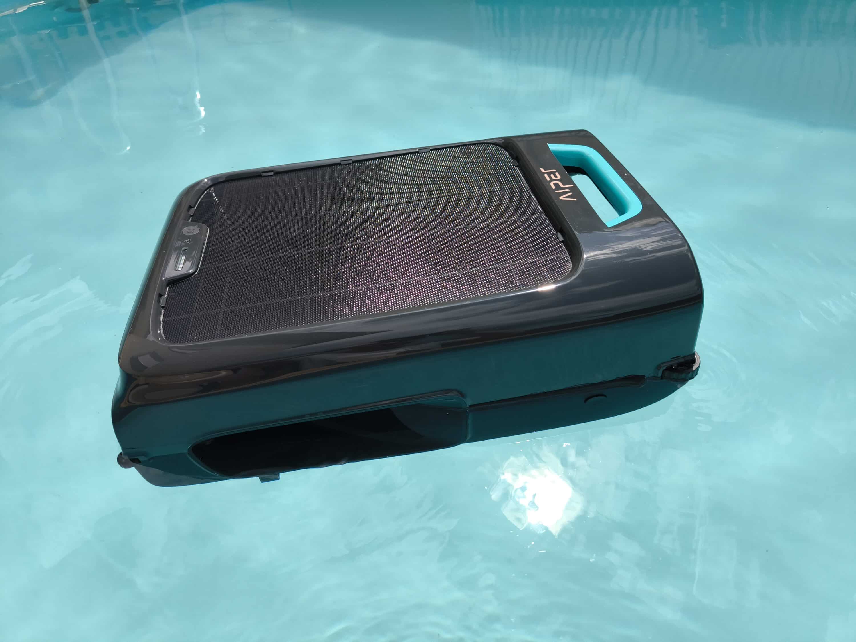 Thanks to the improved two optical sensors on the front of the AIPER Surfer S2, obstacles should also be better detected. On the other hand, the battery has been increased by 1,200 mAh, resulting in a total capacity of 5,200 mAh. This ensures a battery life of up to 35 hours on a single charge. In addition, the manufacturer’s own control center and the optional app connection are still supported. In addition to the increased suction power of the motors, a new function has been added that virtually eliminates the risk of ‘battery death’. If the battery is empty, the pool robot automatically moves to the sunny area of the pool and recharges for a few minutes. It then continues cleaning with a slightly more charged battery.
