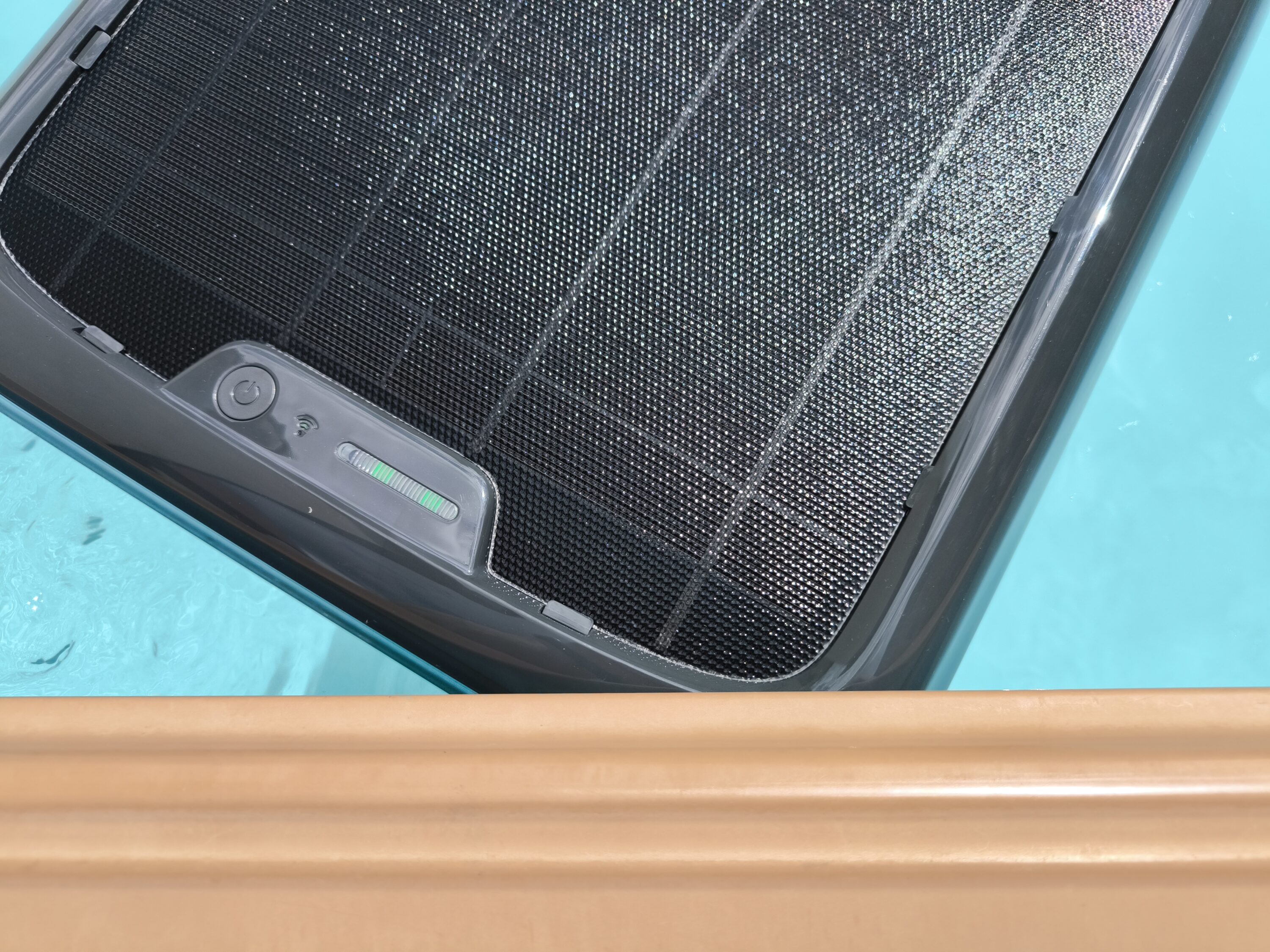 As far as navigation is concerned, there are still no fixed movement patterns. Accordingly, the AIPER Surfer S2 moves continuously in the pool and steers in a different direction when approaching a wall. The same applies to moving around people thanks to ultrasonic sensors. In principle, this already worked very well on the previous model, which is why we did not notice any significant improvement here. The same applies to charging via solar power during cleaning. The AIPER Surfer S1 already impressed us here with a running time of up to 12 hours. Even though the manufacturer has now tripled the runtime, this should only play a minor role in sunny environments.