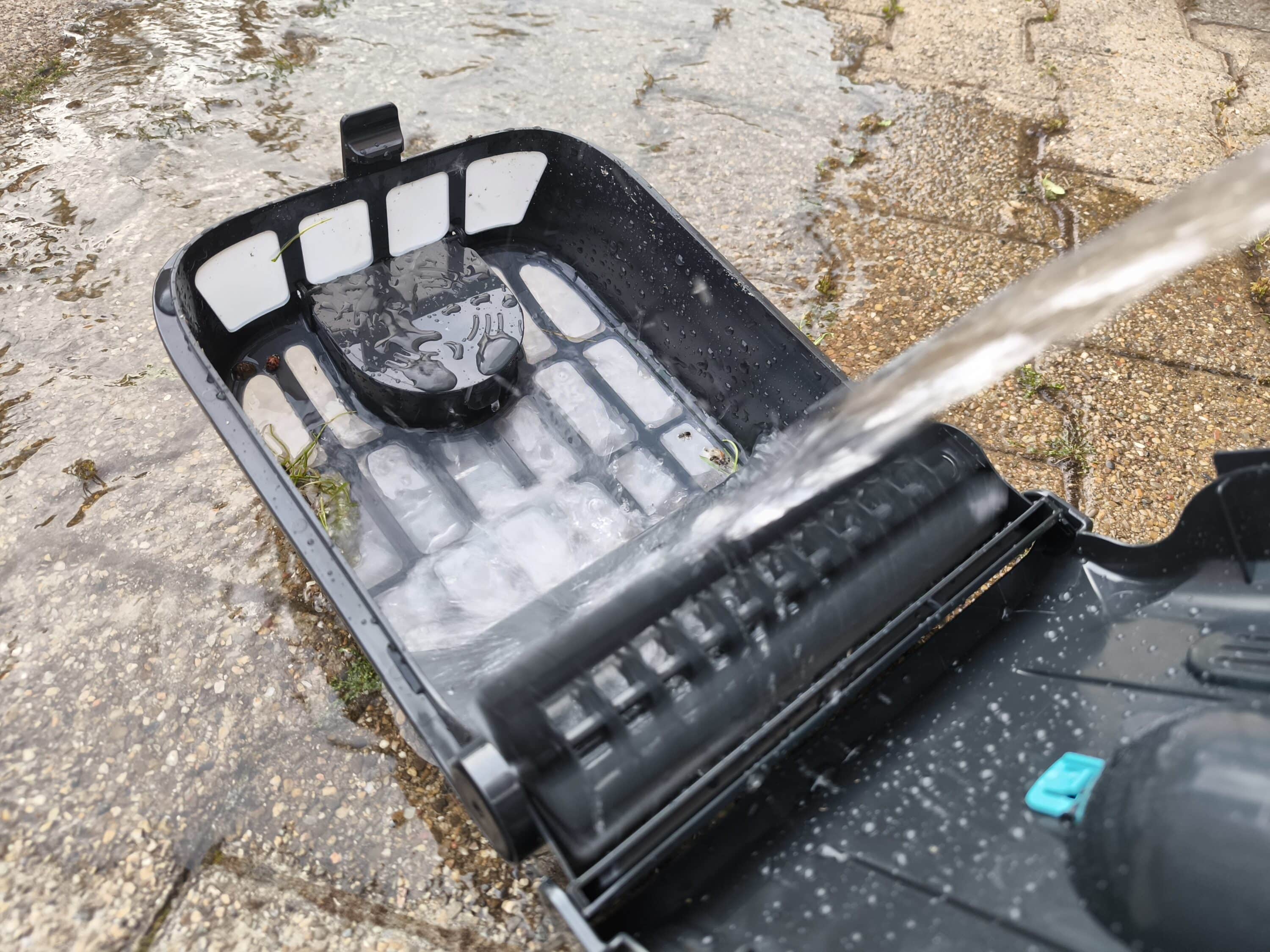 First, the filter basket is completely rinsed out with the garden hose. If necessary, you can then place a chlorine tablet in the corresponding compartment and close the filter basket again. Finally, push the filter basket back into the housing – and the cleaning process is complete. The rinsing process is therefore still simple and without any major hurdles. Although the filter size has been reduced from 5 to 4 liters in the new model, this should hardly be noticeable in practice.