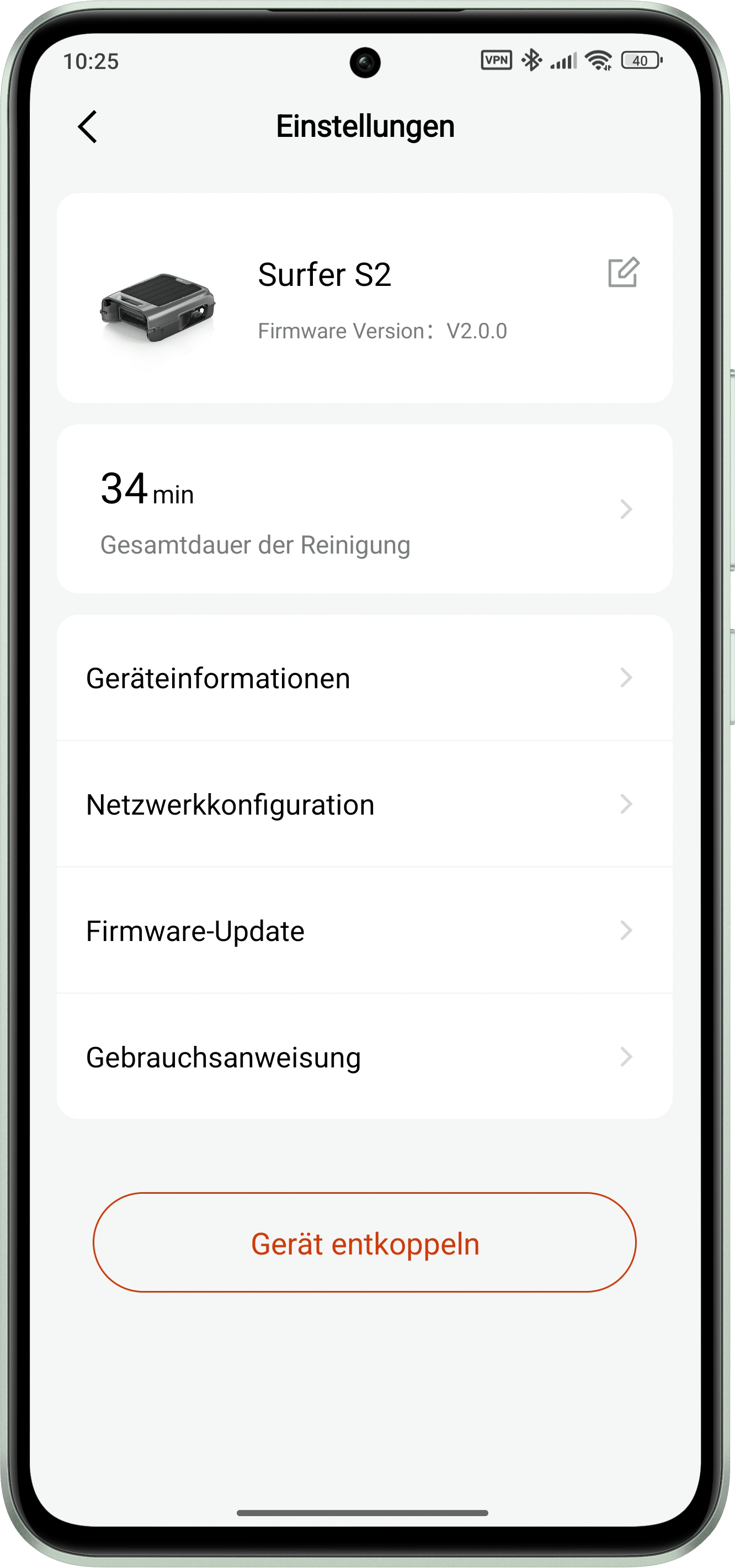 The UI of the AIPER app looks contemporary and is easy to use. Overall, the app for using the Surfer S2 is therefore definitely recommendable, even if some words in the German language still sound a bit bumpy.