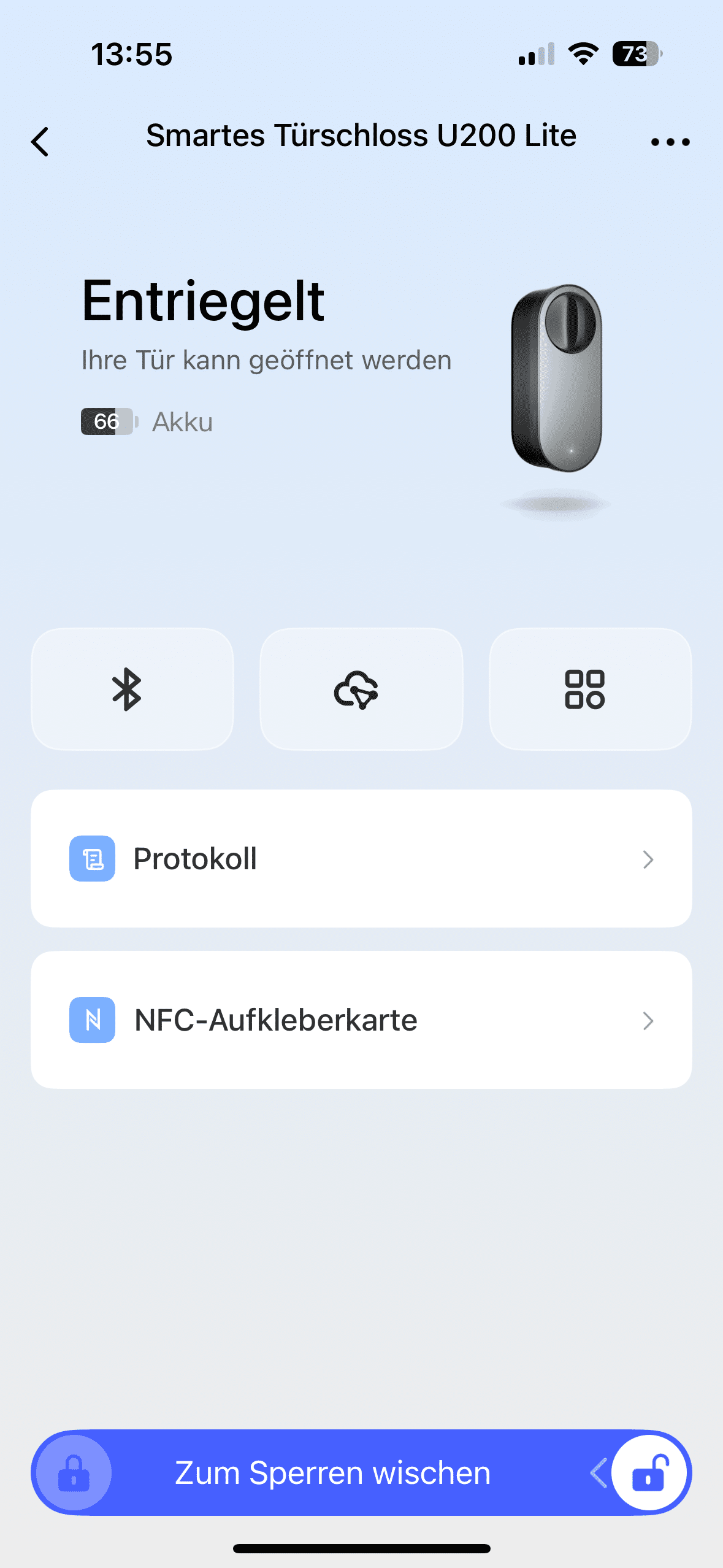 The NFC chip on your device will now react. A corresponding interface appears on the display, on which you will find a button that you just have to tap to open the lock. Really cool: Aqara includes two of the sticker cards in the box. This should not only save you from having to buy a new one if you lose one. What’s more, you can assign a different function to each card during setup via the Aqara app.