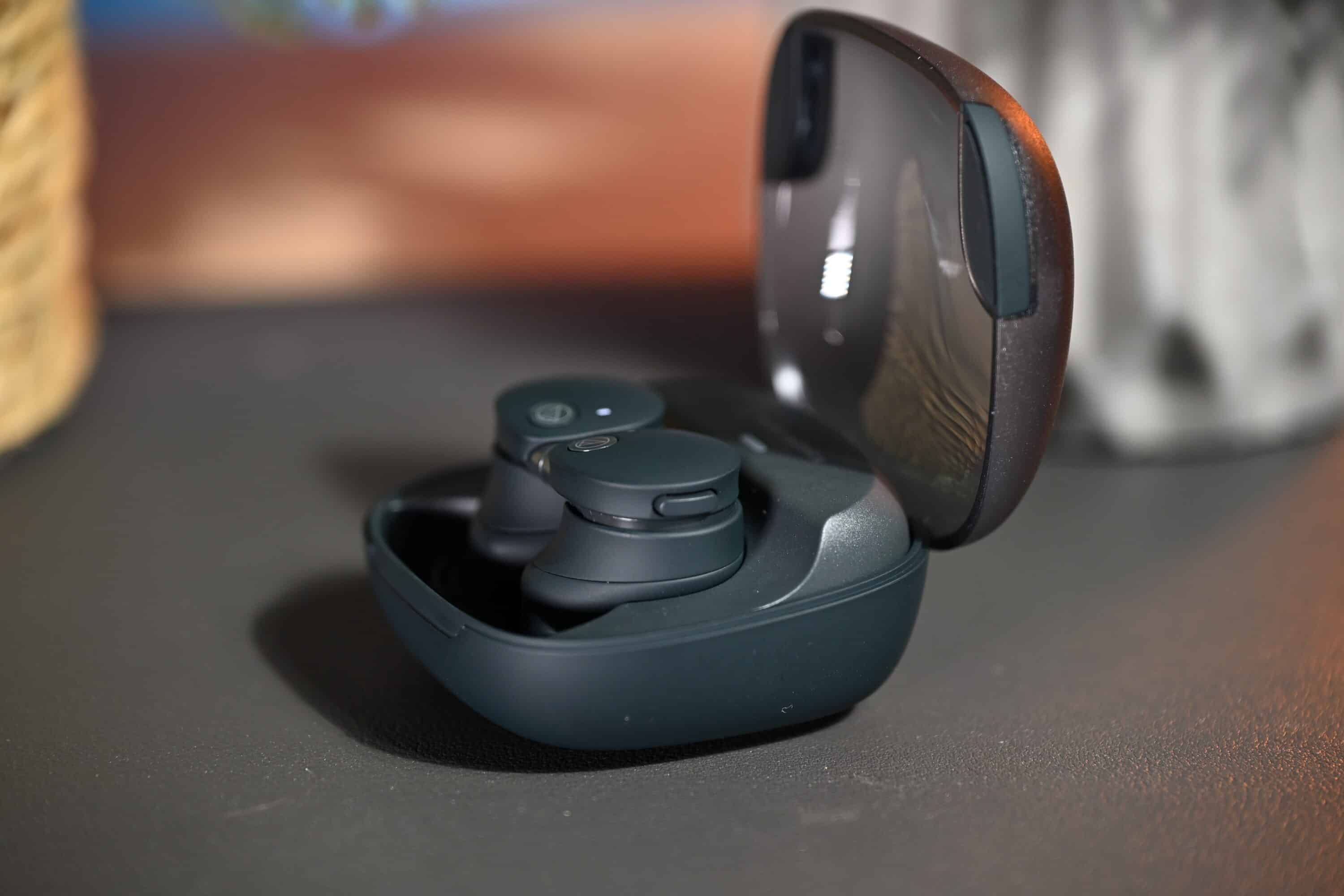 The charging case stores an additional 40 hours so that a total of up to 65 hours of listening pleasure is possible – a value that hardly any other model currently achieves. Even our battery winner in the form of the Cambridge Audio Melomania M100 (our test) doesn’t last quite as long, clocking up 10 hours with ANC and up to 52 hours in the case.