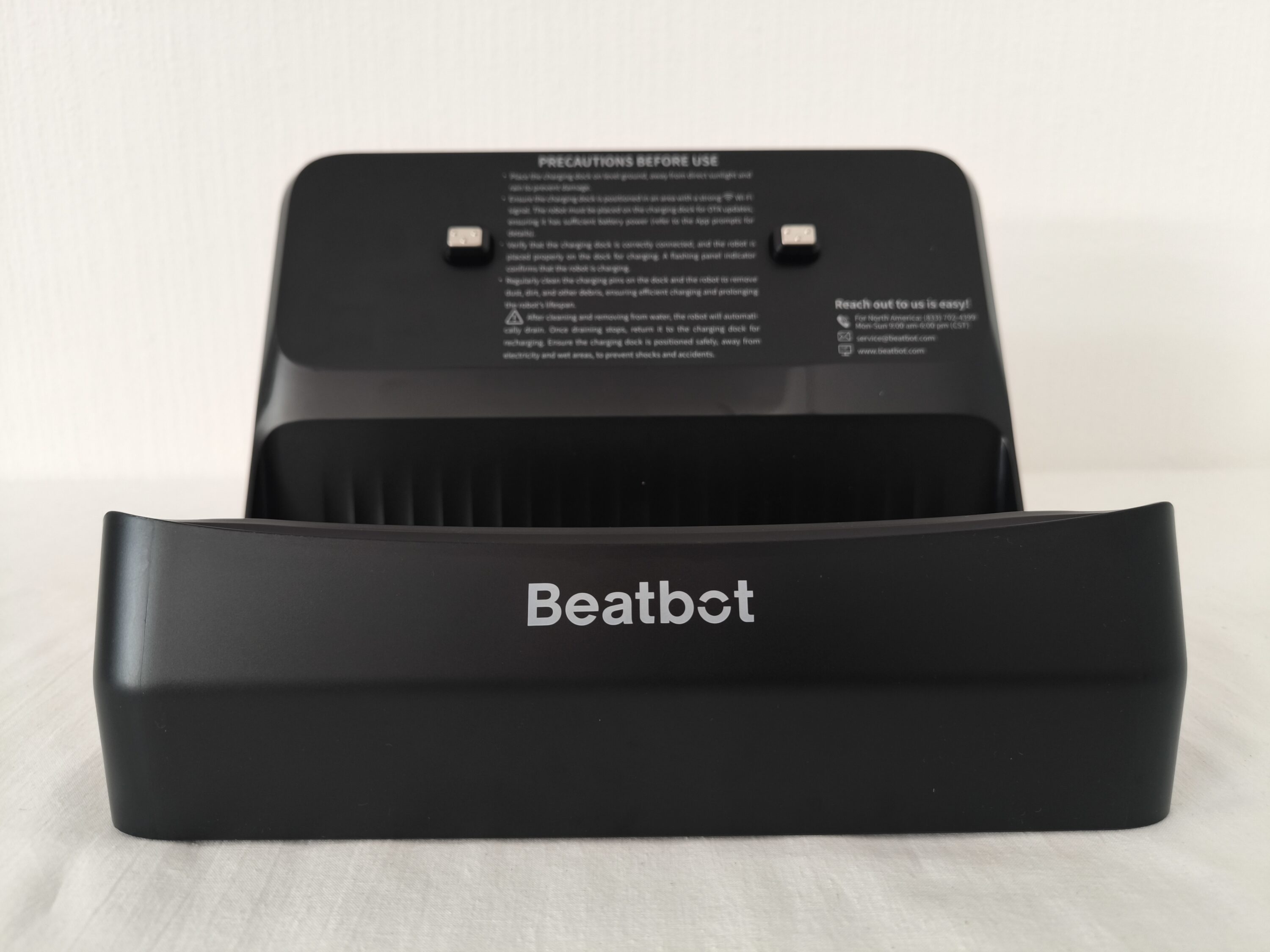 All the accessories for the pool robot are packed in a cardboard box, which in turn is divided into smaller packages. It contains the charging station, a set of clarifying agents and a hook to make it easier to fish out the pool robot. All of this corresponds to the scope of delivery of the Aquasense 2 Pro, but that’s not all. The Ultra model also comes with a set consisting of four side brushes and the corresponding replacement screws as well as a screwdriver. The cover for the pool robot is particularly practical as it protects against dust and water. This means that the Beatbot AquaSense 2 Ultra comes through the cold season clean and undamaged.