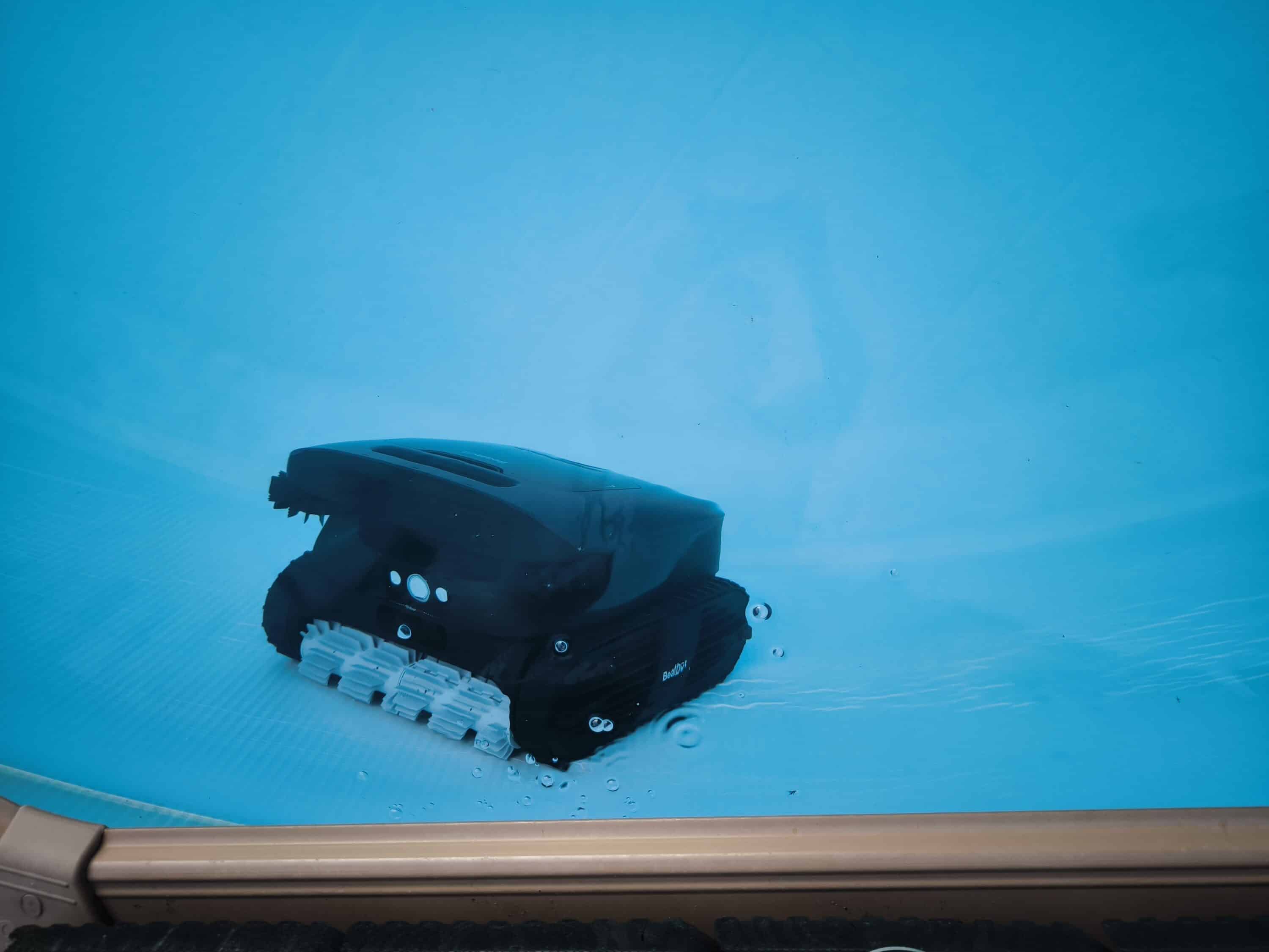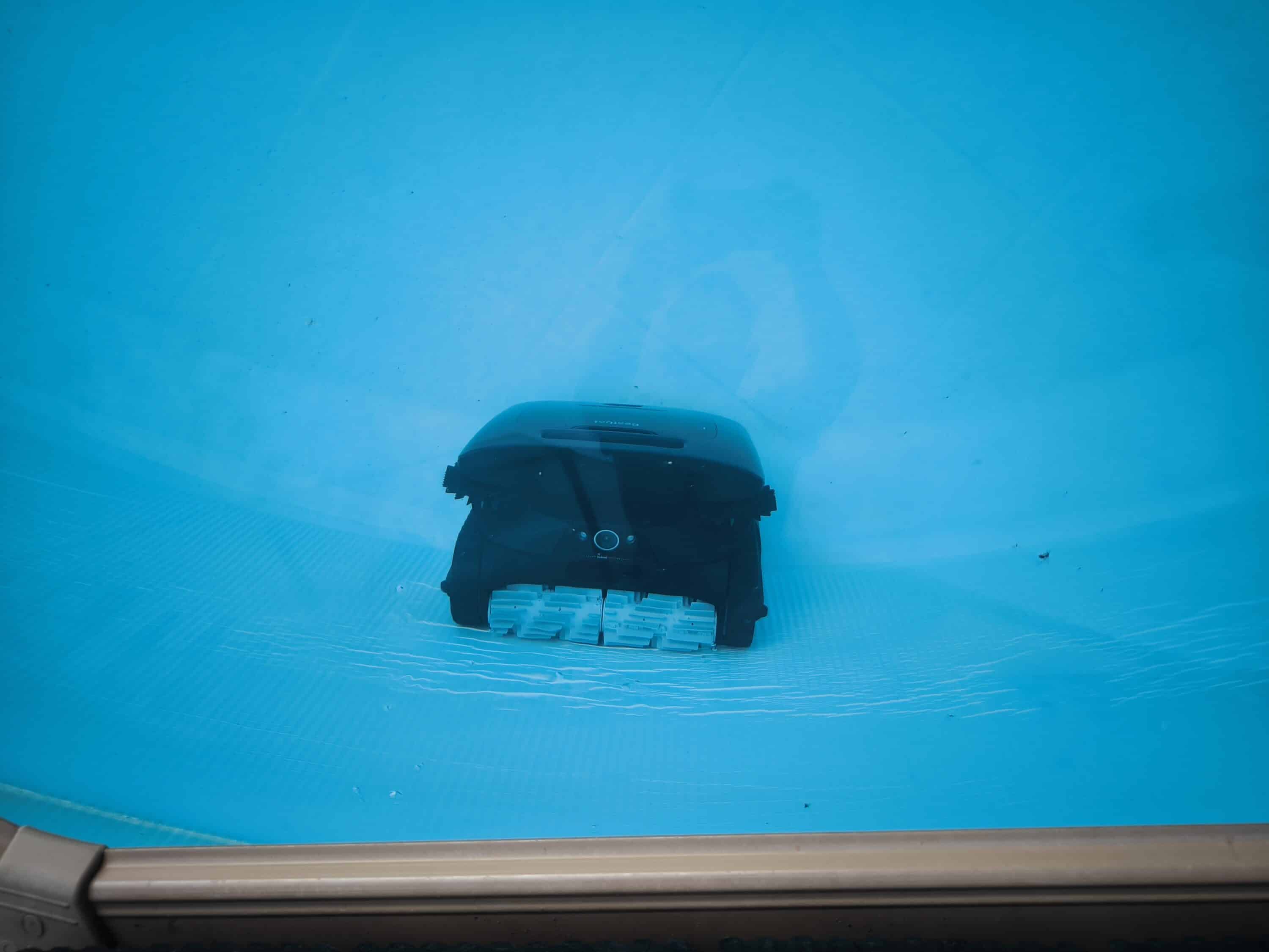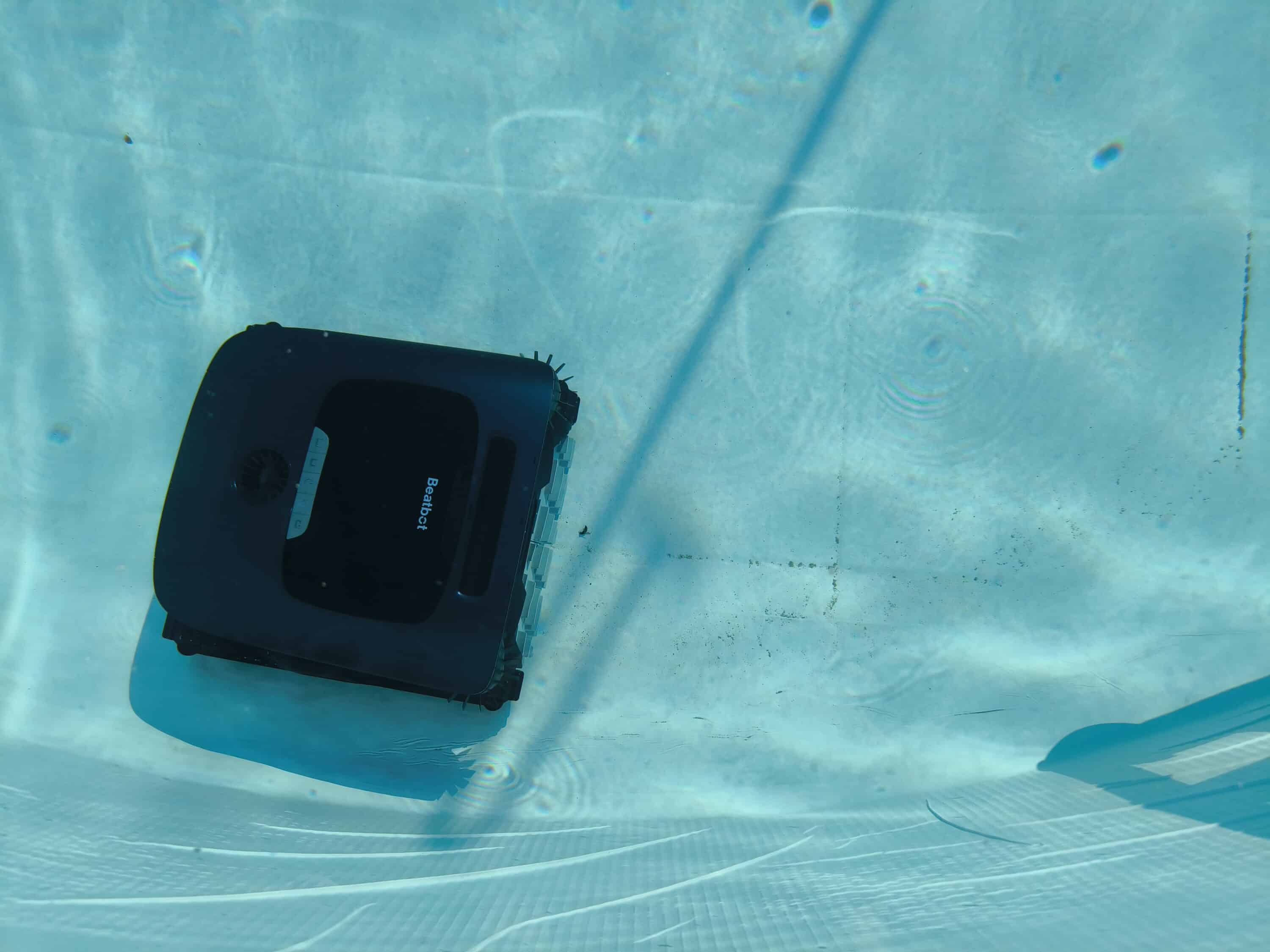 However, our round pool with a smooth, blue liner revealed a shortcoming: the pool robot apparently did not recognize the walls correctly from time to time, ran into them and gave thrust until it changed course after a few seconds. It is unclear whether this is due to the (reflective?) blue pool liner, the compact pool shape or the limited size in general. In pools with a tiled structure, this behavior should probably occur less or ideally not at all. Curious: We have not observed such behavior with the Beatbot iSkim Ultra. As a result, some dirt remained around the edges of the pool.