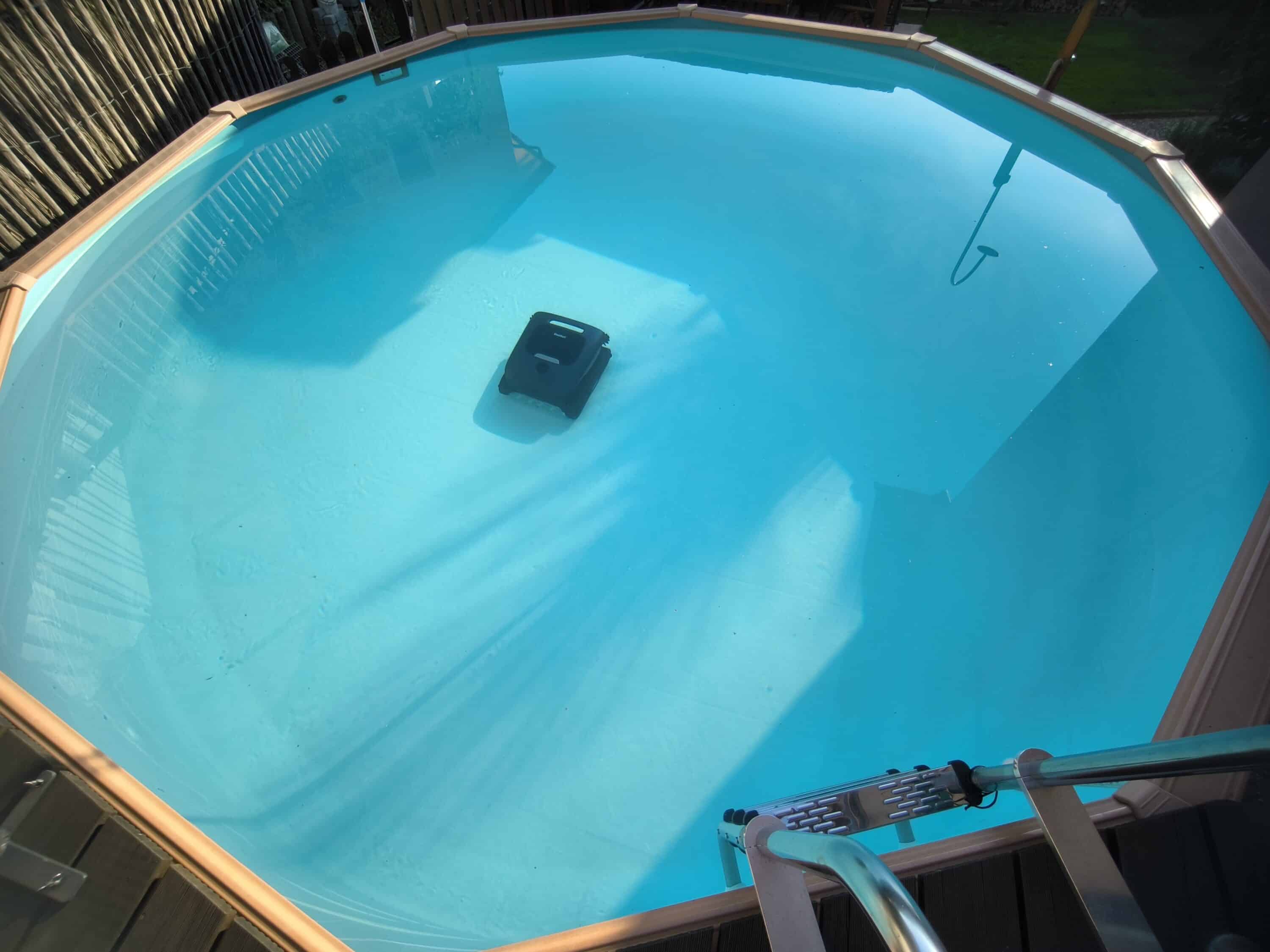 A round pool with a steel wall is used for our test. With a height of 120 cm and a diameter of 460 cm, the pool has a capacity of approx. 19,000 liters. As part of our test, we want to investigate whether the Beatbot AquaSense 2 Ultra is able to remove all the dirt from the pool.