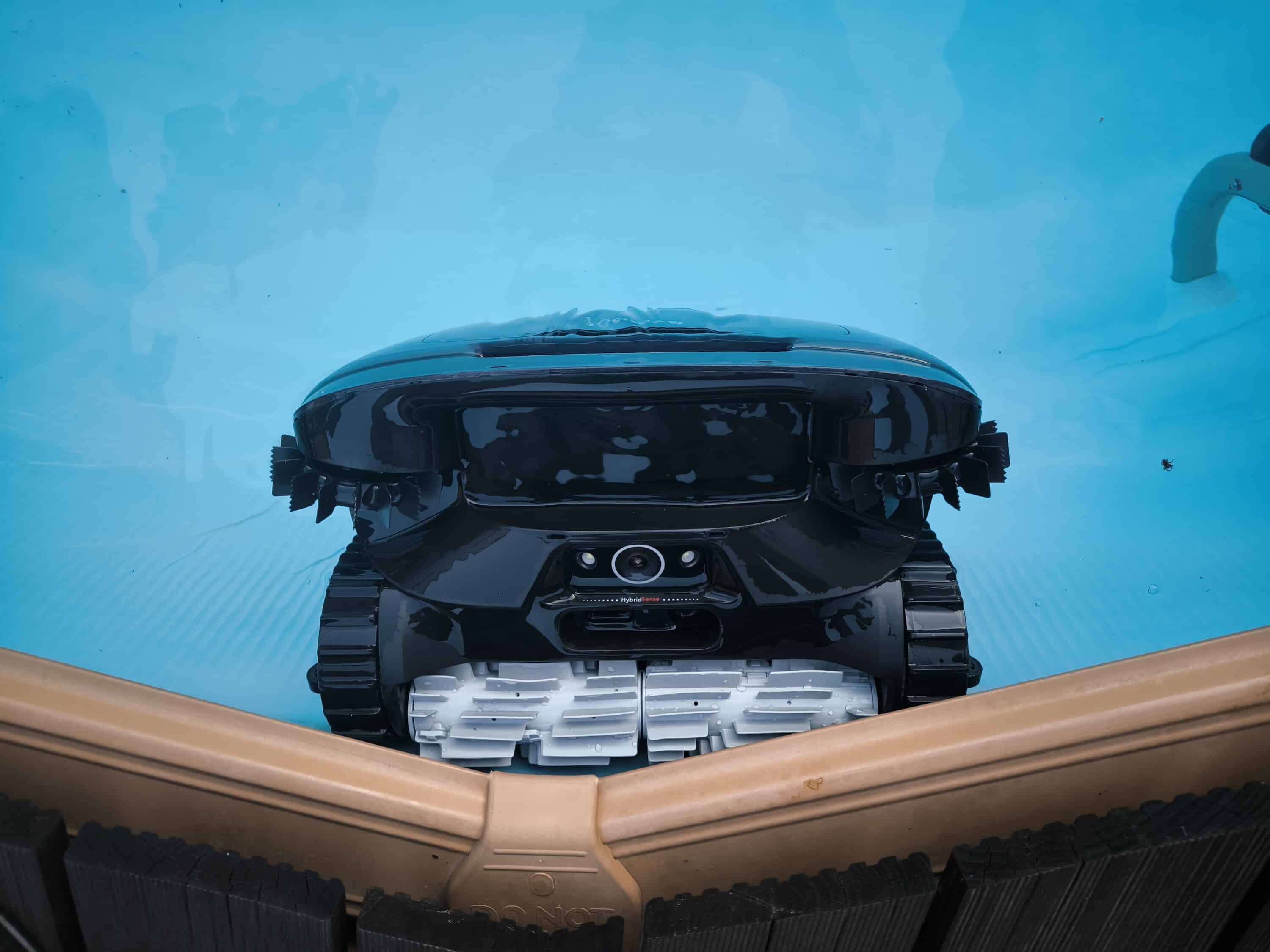 The pool robot puts a lot of effort into this and delivers a remarkable result. It not only cleans the wall surface without any gaps, but also masters the pool ladder, which has already caused headaches for other robots, with ease. Even the piled-up sand corners are no obstacle for the pool robot, which has always been able to shimmy up safely. This is thanks to the much more sophisticated technology package, which is why any other reaction would have surprised us. Cool: In contrast to conventional pool robots, which only scrub the waterline once, the AquaSense 2 Ultra first moves to the surface, then back into the water and finally up a second time. This ensures that even stubborn dirt is removed on the second attempt at the latest.