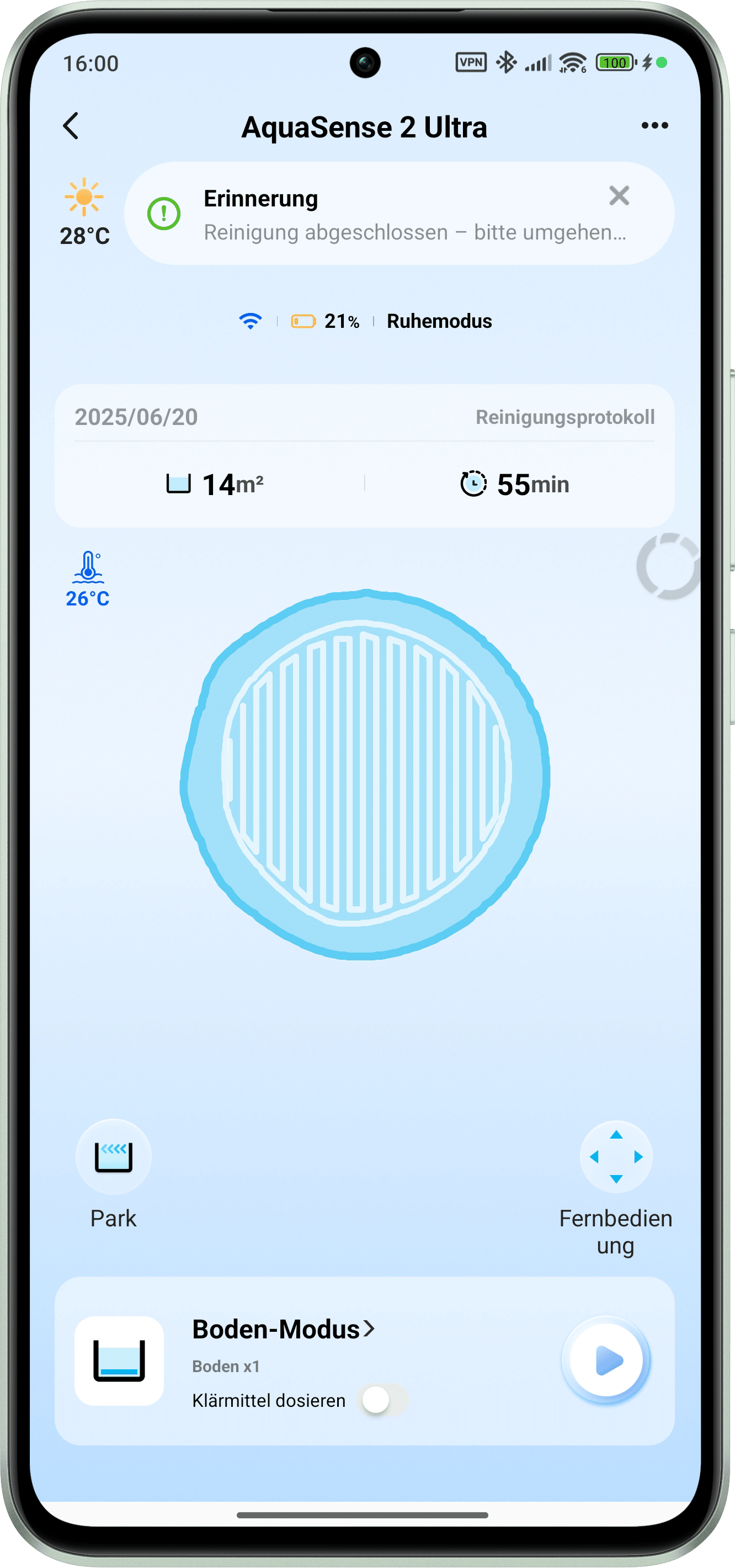 Other functions include remote control of the Beatbot AquaSense 2 Ultra in skimmer mode, i.e. on the water. This can be quite cool from time to time, especially with its own turbo button. Just tap the “Park” button and the pool robot automatically positions itself on the surface of the pool to be picked up. The app also provides insights into previous cleaning processes, live tracking and push notifications when cleaning is complete. However, one of the limitations is that the wireless connection breaks down under water, which means that some functions cannot be used in real time. Regardless of this, the app presents itself as a whole with a clear user interface and many functions that need to be explored first. With the exception of the still somewhat inaccurate translations, there is practically nothing to complain about.