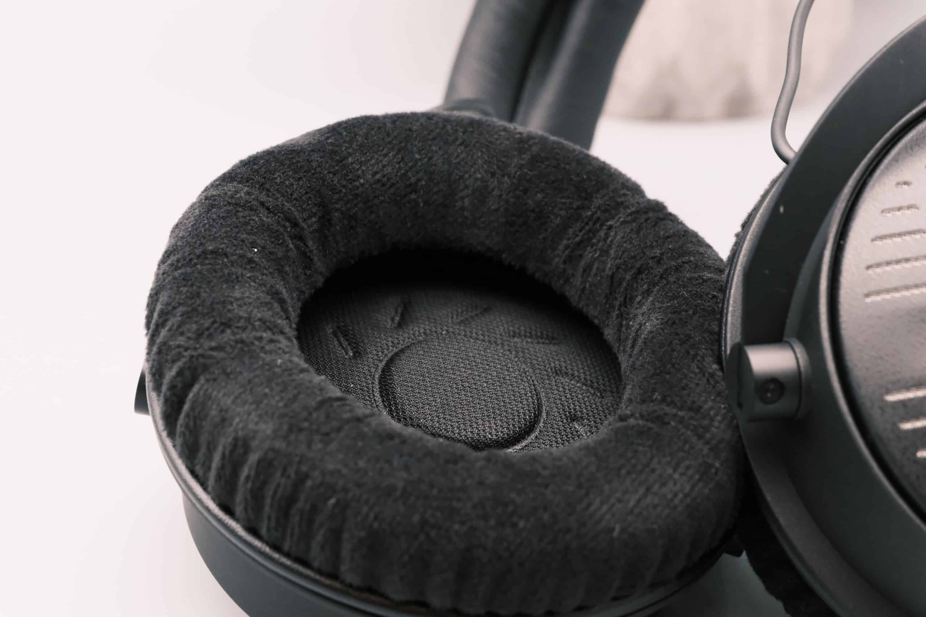 However, both velour versions of the open studio headphones differ slightly in terms of hardness: the pre-installed model, referred to by the manufacturer as producing velour, is slightly softer than the replacement pair (mixing and mastering velour). In terms of sound, however, I couldn’t make out any major difference.