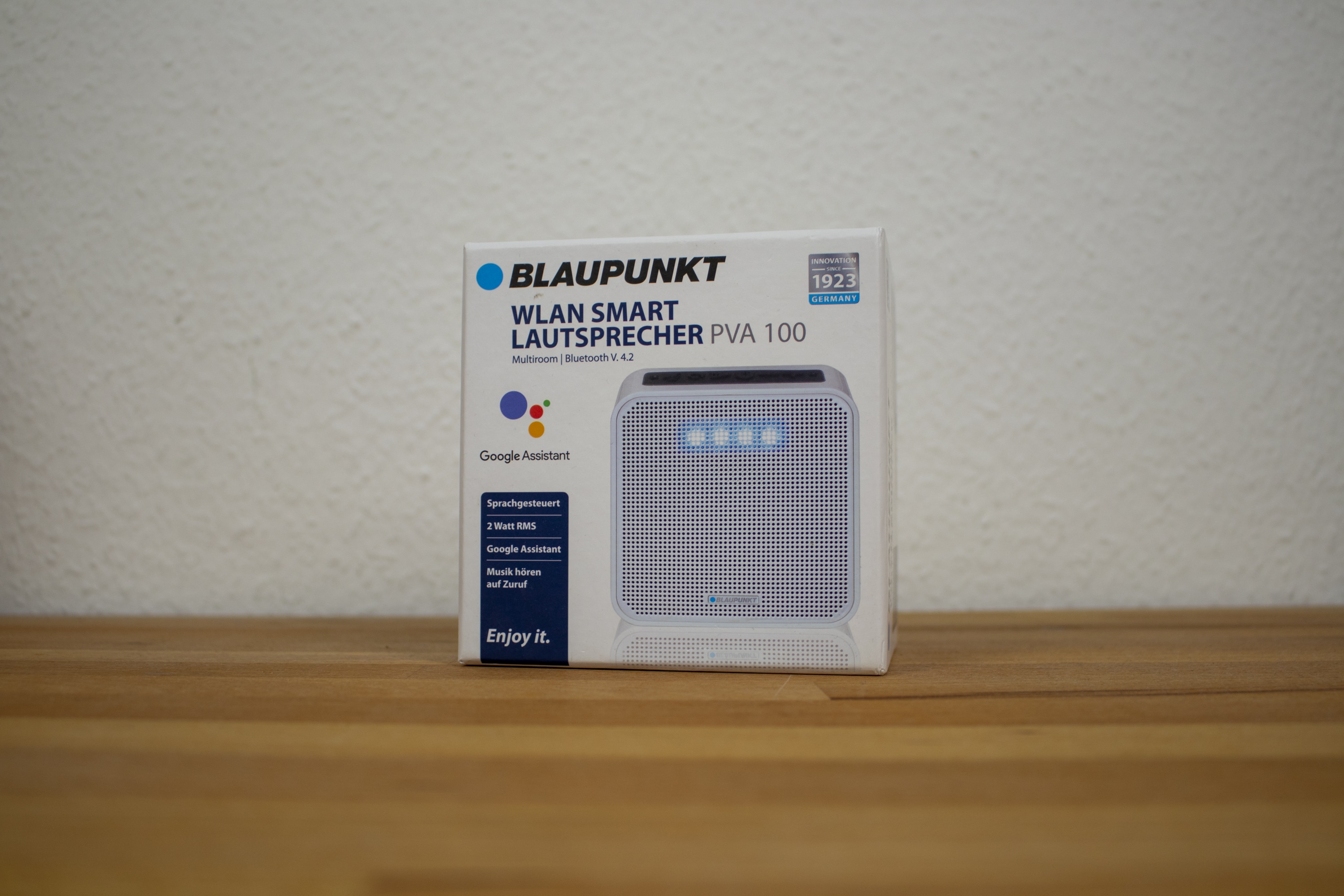 At last year’s IFA Blaupunkt presented the PVA 100*, a small Bluetooth speaker with integrated speech assistant from Google. The device has been available in stores for several weeks now. We have subjected it to an extensive practical test – the results of the test and our assessment of the device can be found in the following lines.