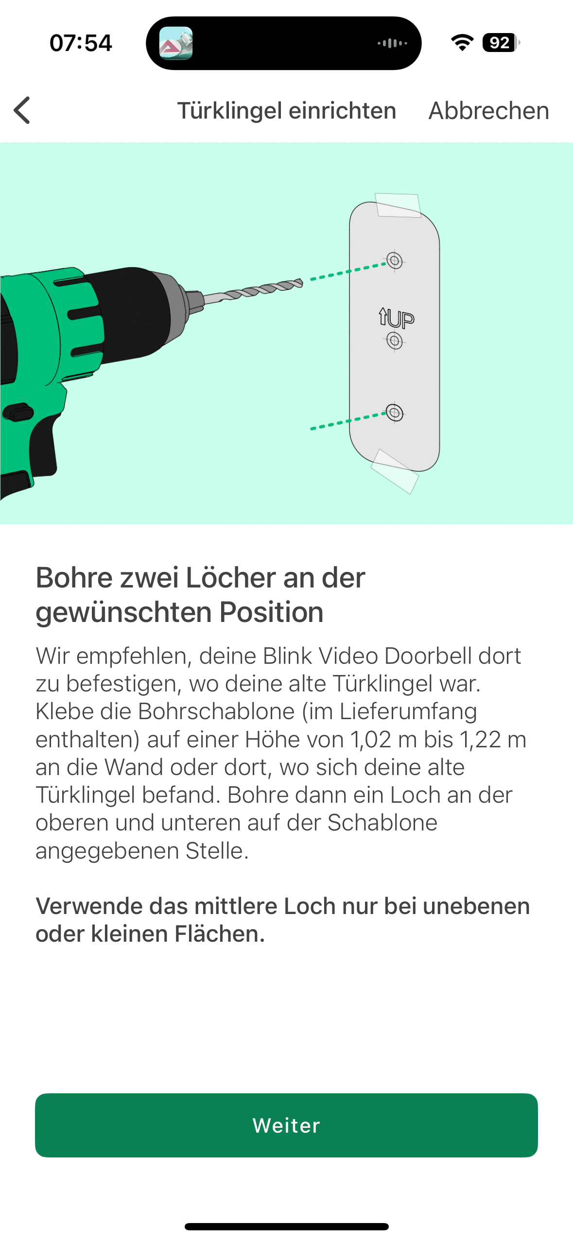 Installation is pleasantly uncomplicated. After unpacking, insert the supplied batteries, attach the bracket to the house wall and plug in the doorbell. Blink includes suitable screws and wall plugs. In combination with the practical drilling template, even beginners can quickly attach the bracket to the house wall.