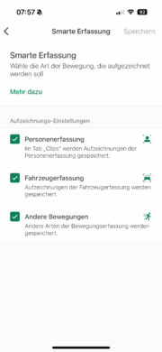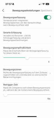 This includes defining motion zones, which can be used to exclude certain areas of the image, and adjusting the sensitivity of motion detection. Anyone living in a busy street will quickly appreciate these functions, as they can significantly reduce false alarms. The video quality can also be adjusted. Depending on the selected mode, you can prioritize between the best possible image display and a longer battery life. Another highlight is the two-way communication.