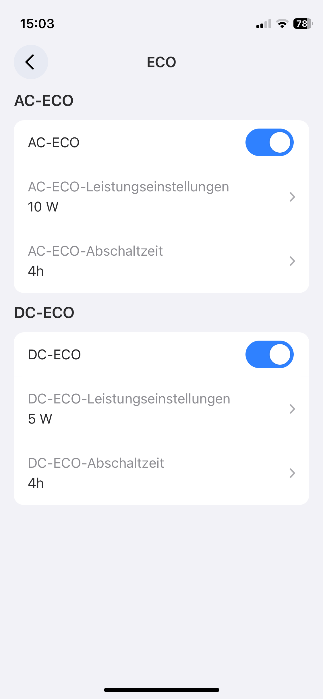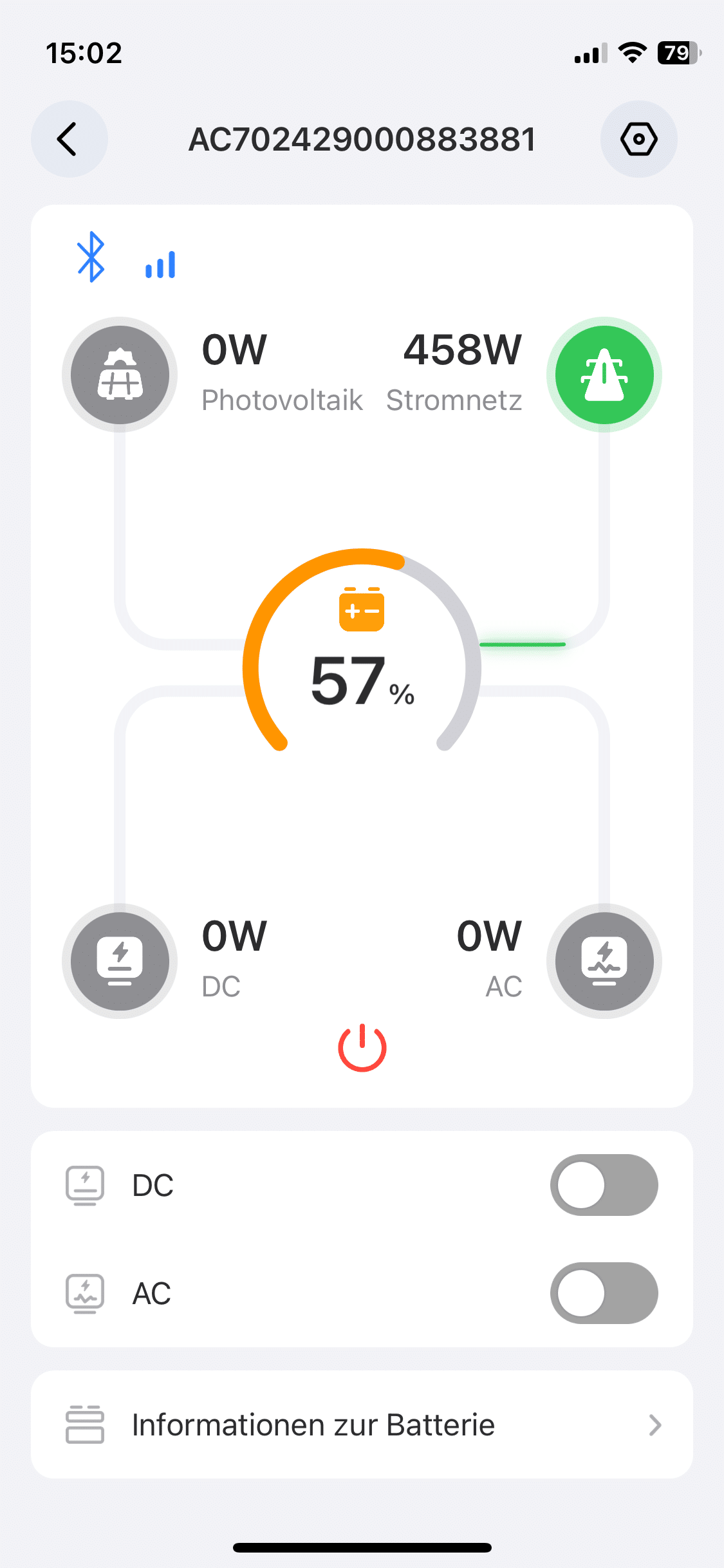 You can also start firmware updates via the app to keep the Powerstation up to date. In my opinion, these are the most important features of the app. Apart from that, you can also adjust a few small things. For example, you can specify after how much time of inactivity the screen should switch off automatically. I think it’s a bit of a shame that the AC70 only has a Bluetooth module.
