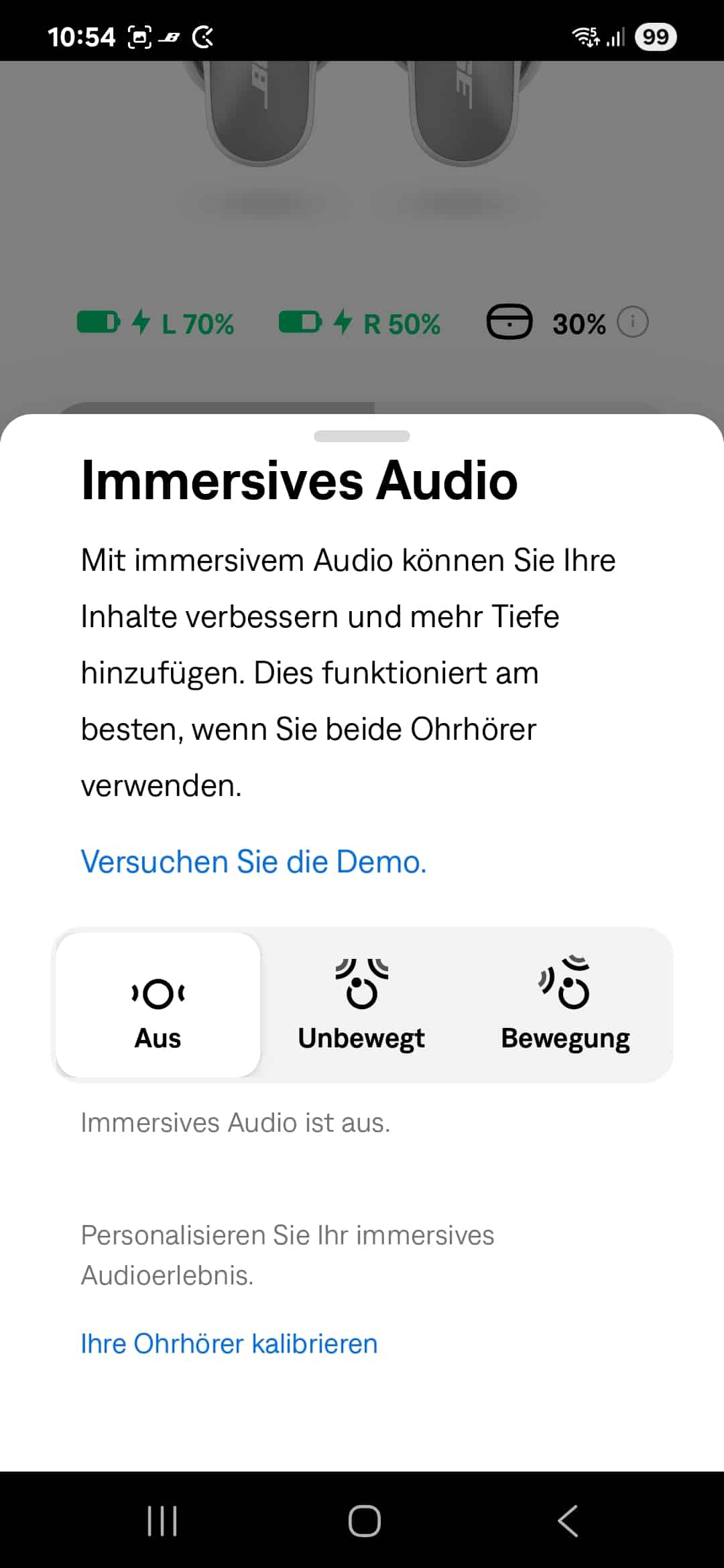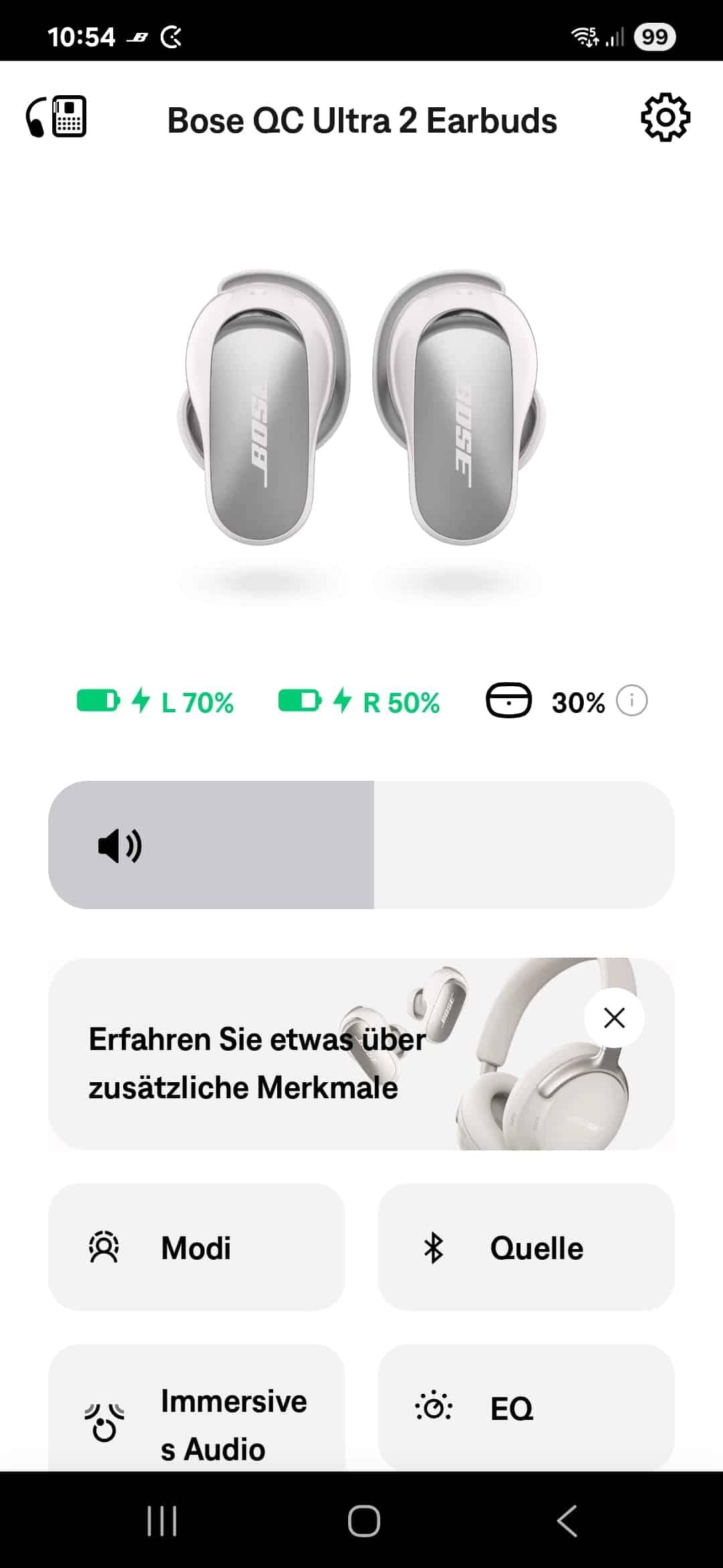 The Bose app is used as a companion app, which is unfortunately not entirely convincing. The setting options are rather rudimentary, even though I didn’t really miss anything during the test. With one exception.