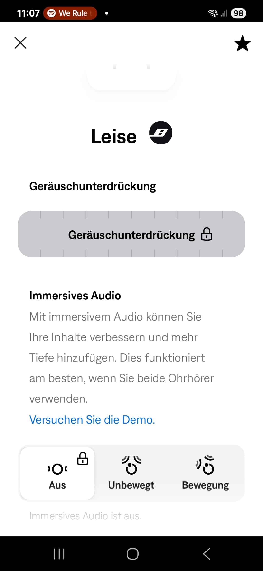 Top: Volume control is also possible via a swipe gesture on the outer sides. Not all top models in the in-ear segment can do this yet. However, the controls are not customizable. However, shortcuts can be created individually for both sides. These allow you to switch between Bluetooth sources, activate immersive audio or activate the voice assistant, for example.