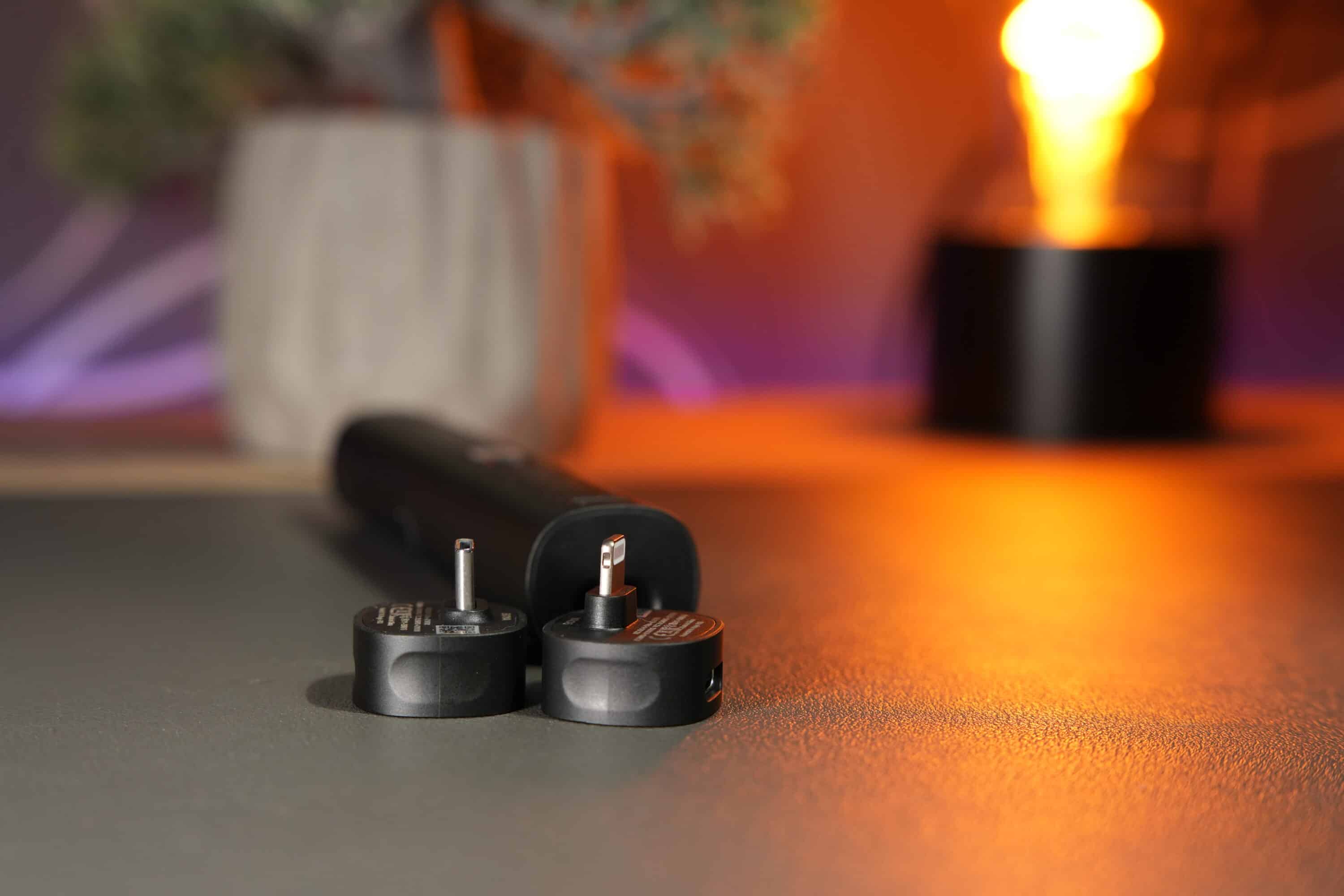 The special feature is of course the flexibility, which is absolutely unique in its shape. And thanks to the two windshield variants included, you are also well equipped against strong winds when using it outdoors. The Charging Case is really very comfortable to hold and can be used perfectly.