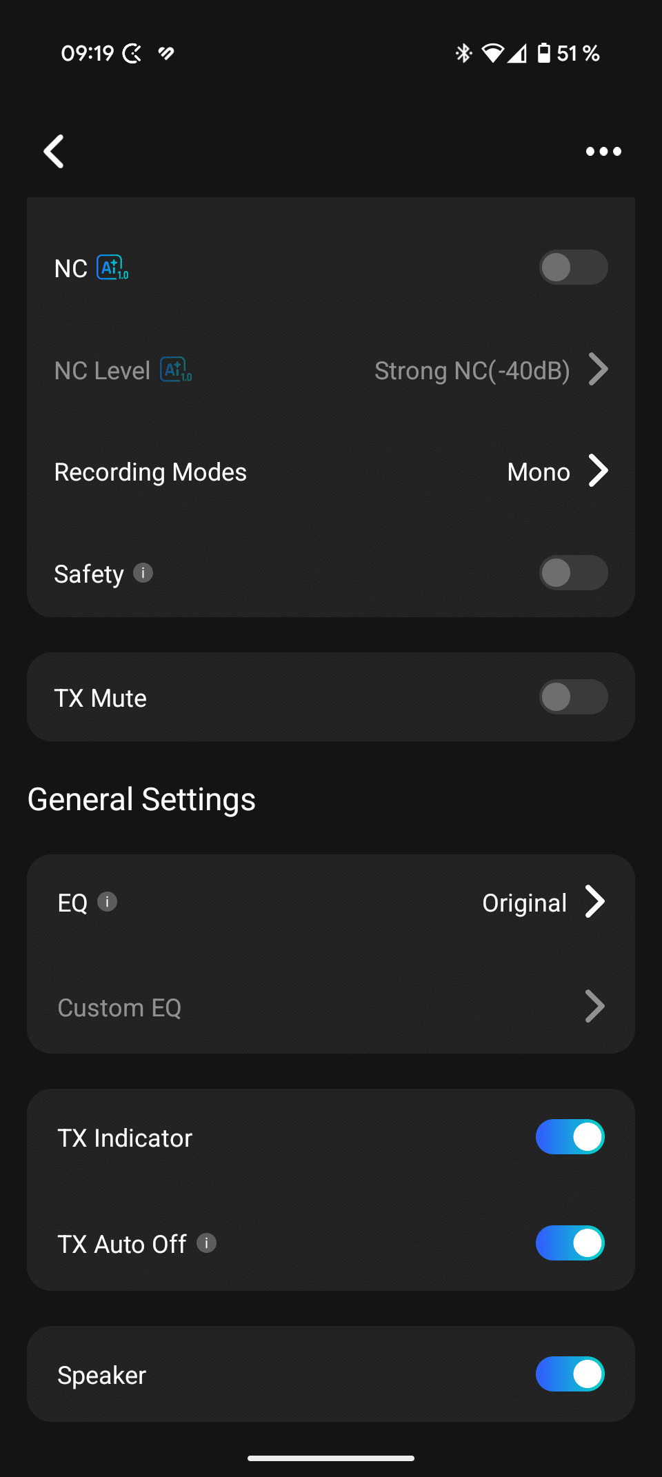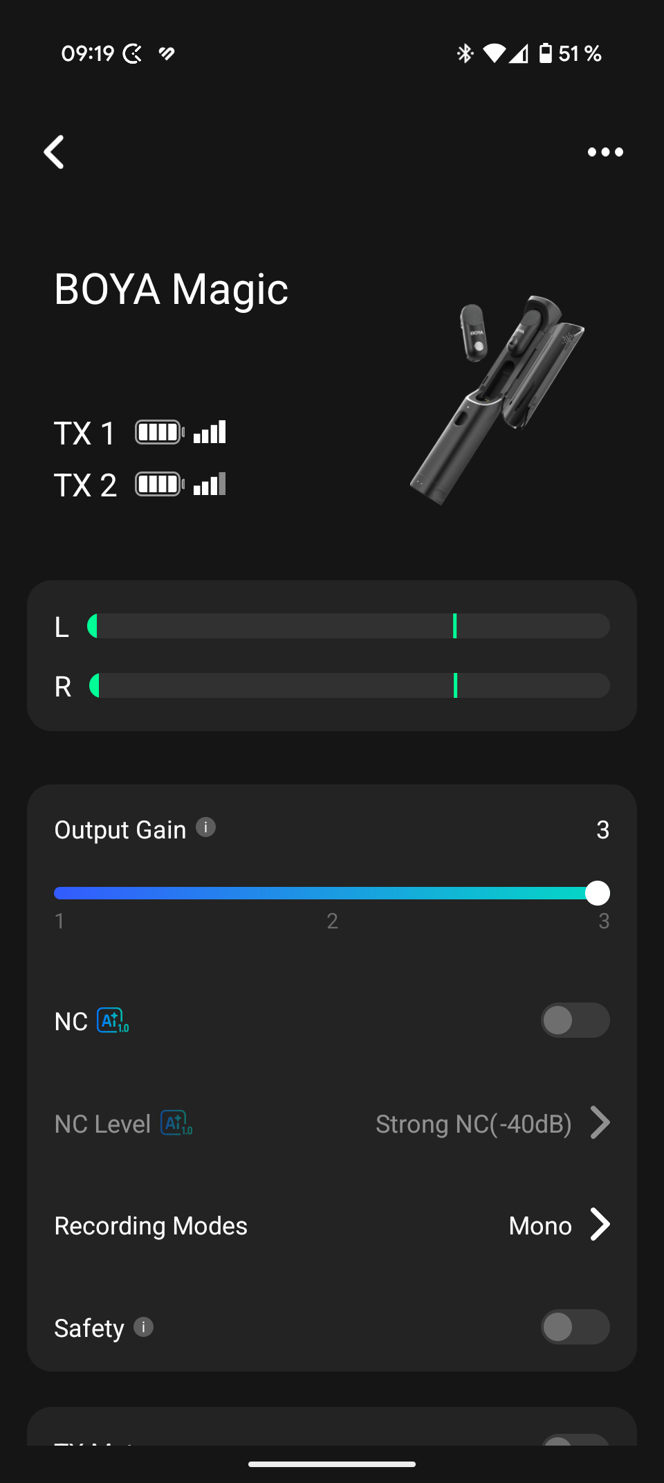 BOYA Central is used as a companion app on the smartphone, which has a tidy interface and a convincing range of functions. Here you can see the gain of the microphones, adjust the level in three stages, activate noise cancelling, switch between mono and stereo recording, add a safety track, adjust the sound using an equalizer and much more. Simple, clear, intuitive.