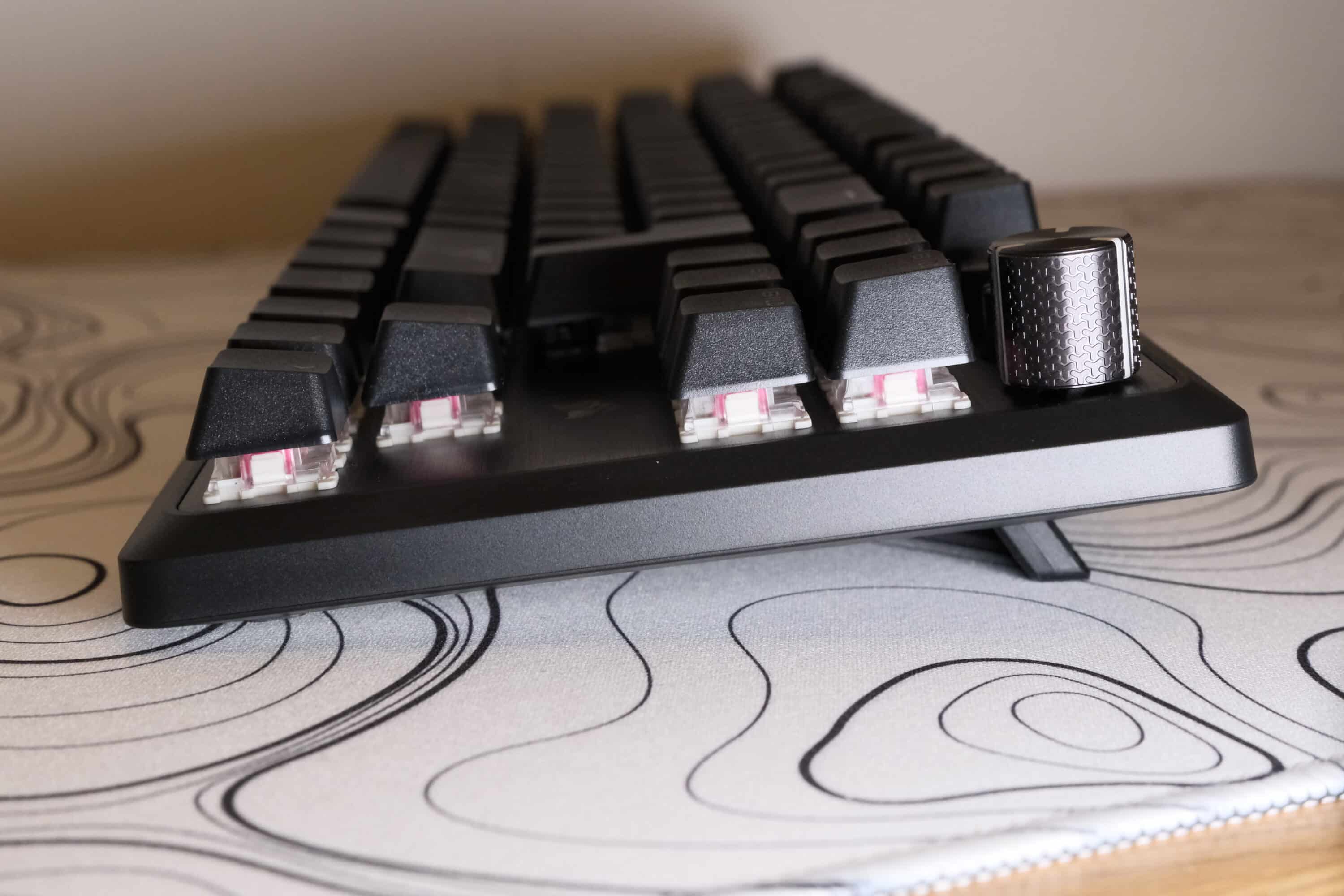 The switches are also good, but at a price of just under 190 euros, the decision to use two different, non-replaceable switches has a rather bitter aftertaste. In addition, the mechanical switches not only sound noticeably louder when triggered, but are also not quite as smooth. The stabilizers could also be a little tighter. A slight wobble is noticeable, especially with larger buttons such as the space bar or Enter key.