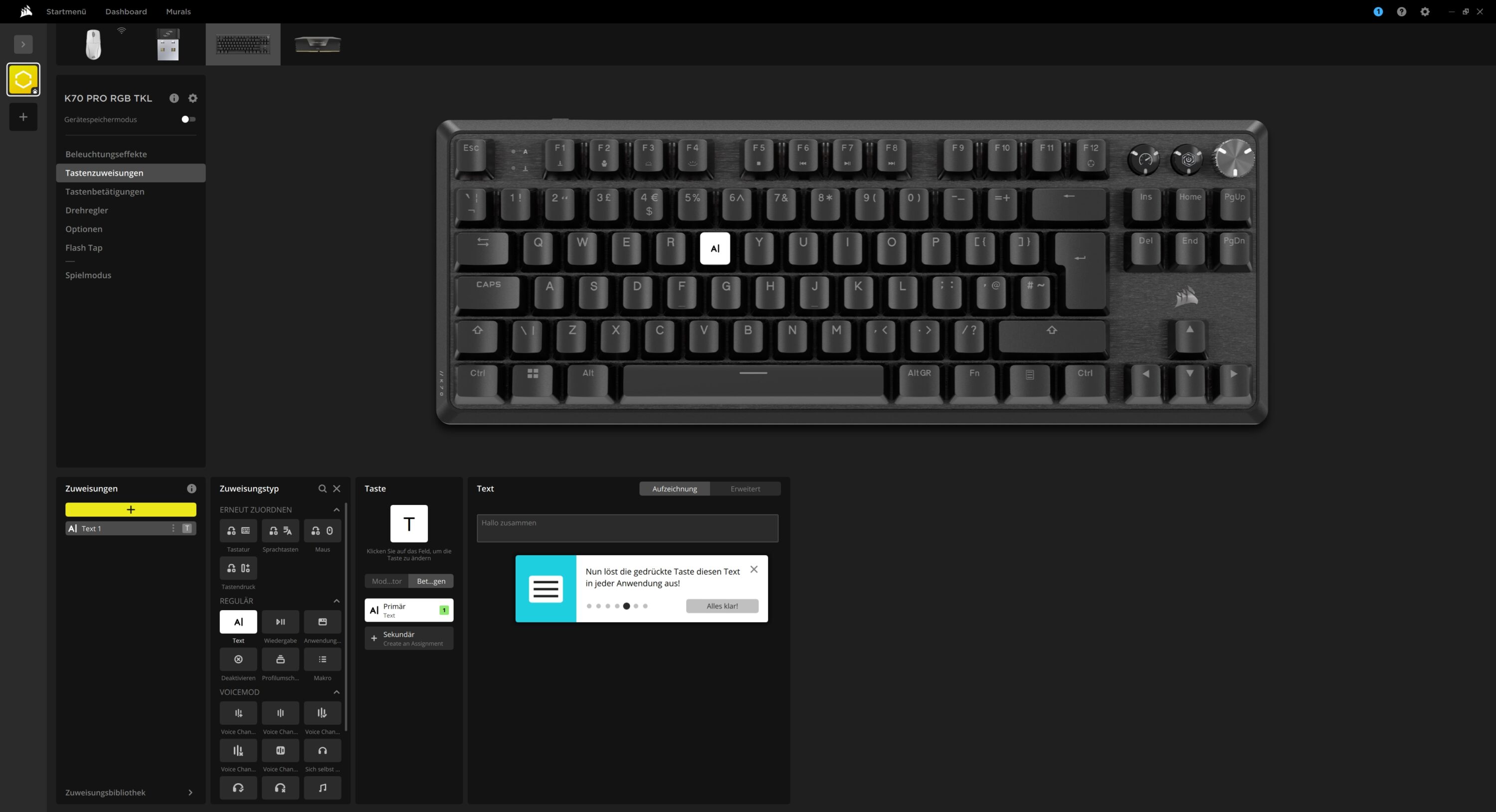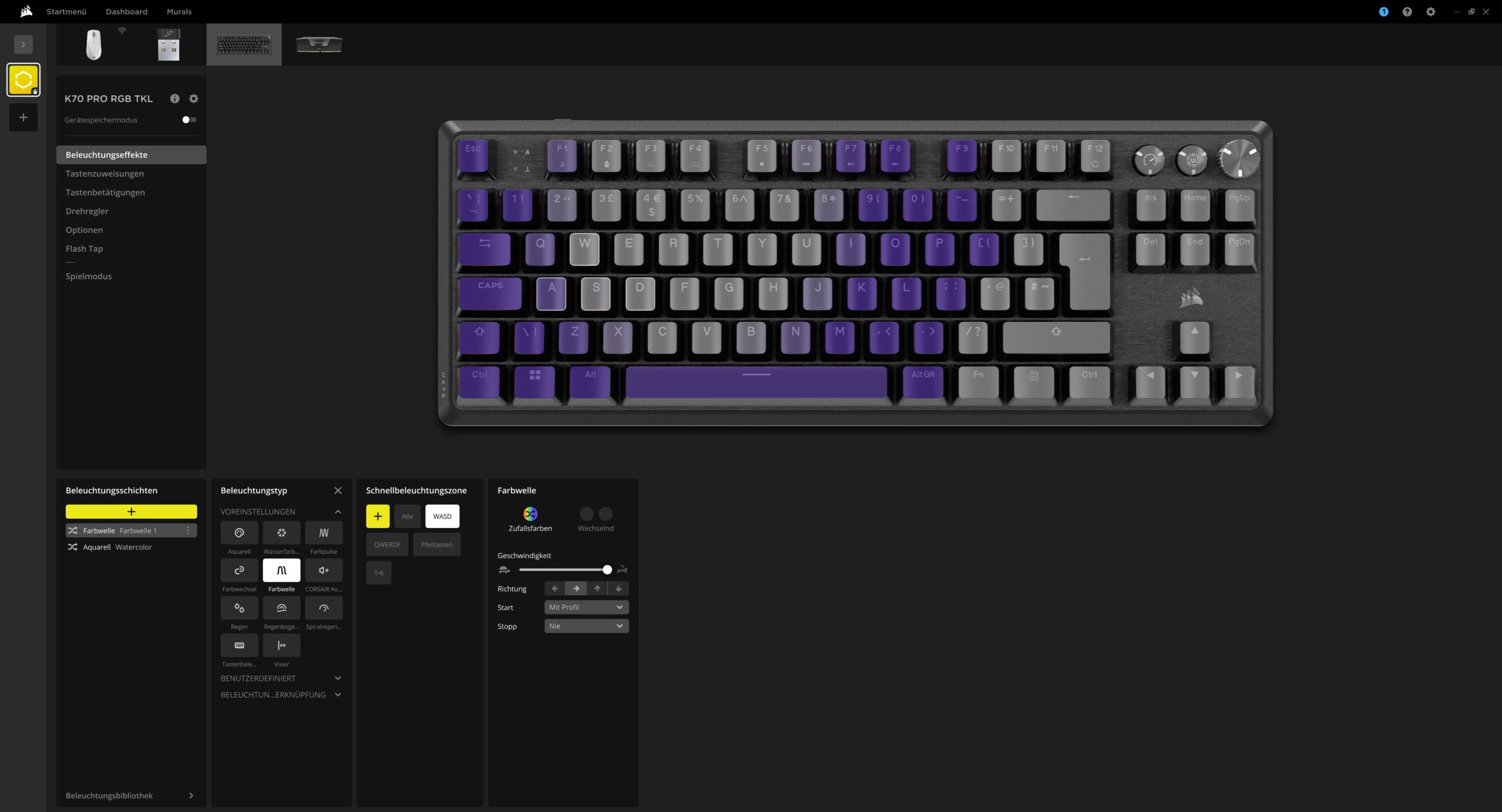 The sound of the keyboard is also quite pleasing, although the K70 Pro TKL is definitely one of the louder keyboards on the market. The keyboard is not quite as “thocky” as the aforementioned competitors, but I still find the acoustics quite pleasant. Even if the difference between the Hall-effect and mechanical switches is clearly audible.
