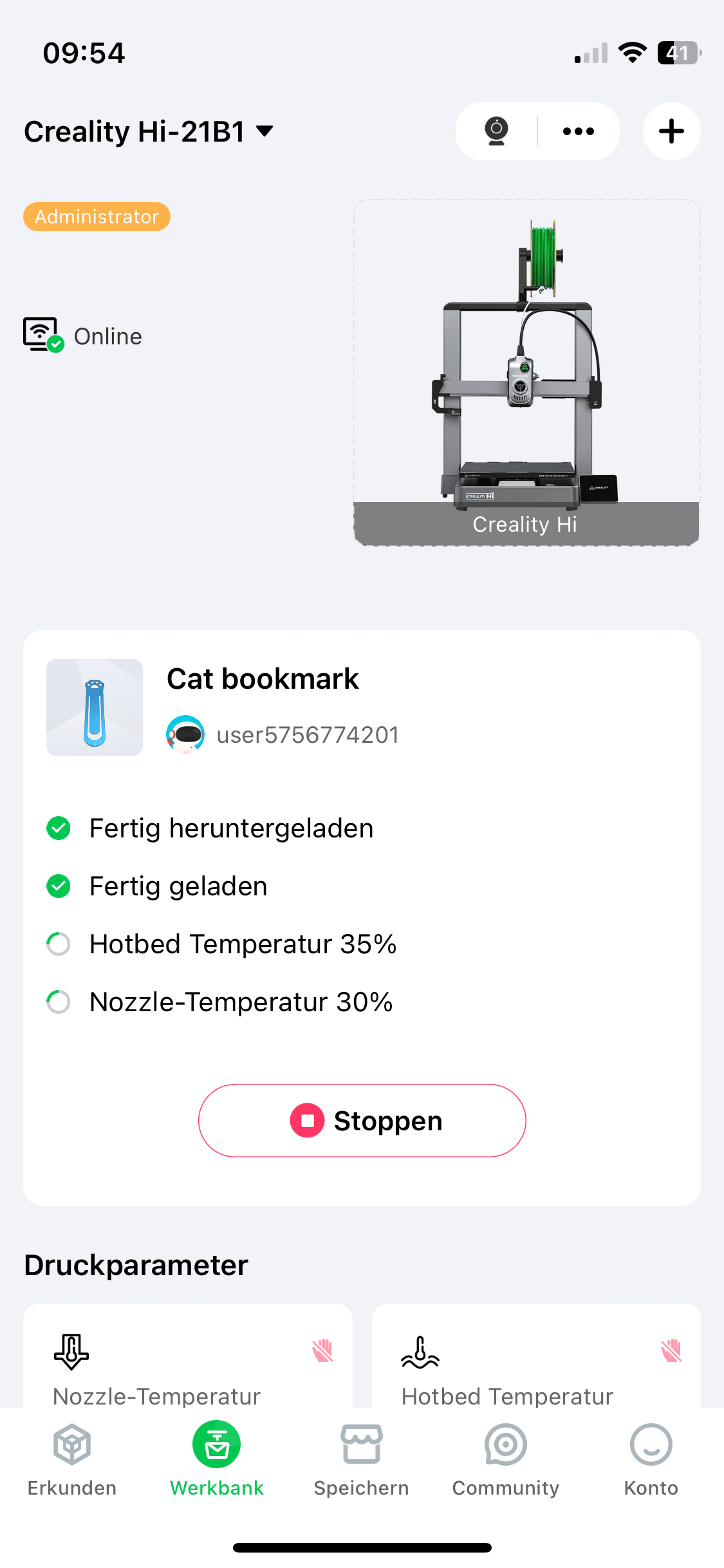 For the print tests, I initially selected a model that the Creality Hi already provides in the device memory. But of course the printing options here are extremely limited. For more inspiration, it’s worth taking a look at the in-house Creality Cloud app. This not only allows you to control and monitor the Creality Hi. You can also access various print designs from other users. If you like a design, you can download it to the 3D printer and then have it printed.