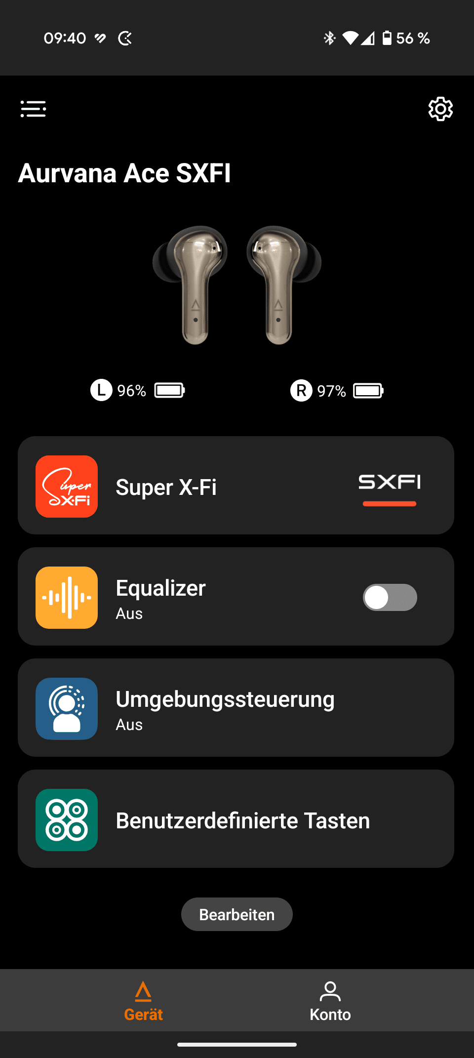 In addition to information about the battery status, the app also gives you the option of switching Super X-Fi on or off, as well as a detailed and customizable equalizer. The latter deserves great praise, as the number of presets is gigantic. You can also influence the sound yourself in 10 bands and fine-tune the bass and treble separately.