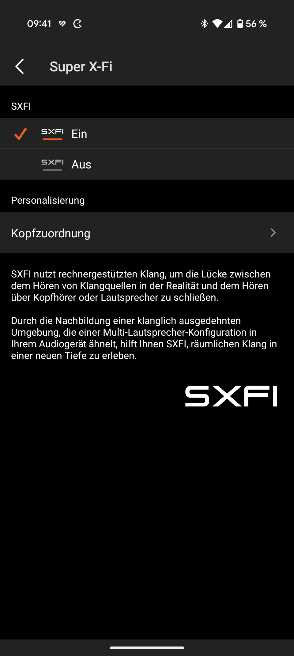The Creative app is a successful addition and scores points with its clear and well thought-out design. However, the need to register is a negative aspect. To use the SXFI function, a second app (SXFI app) must also be installed.