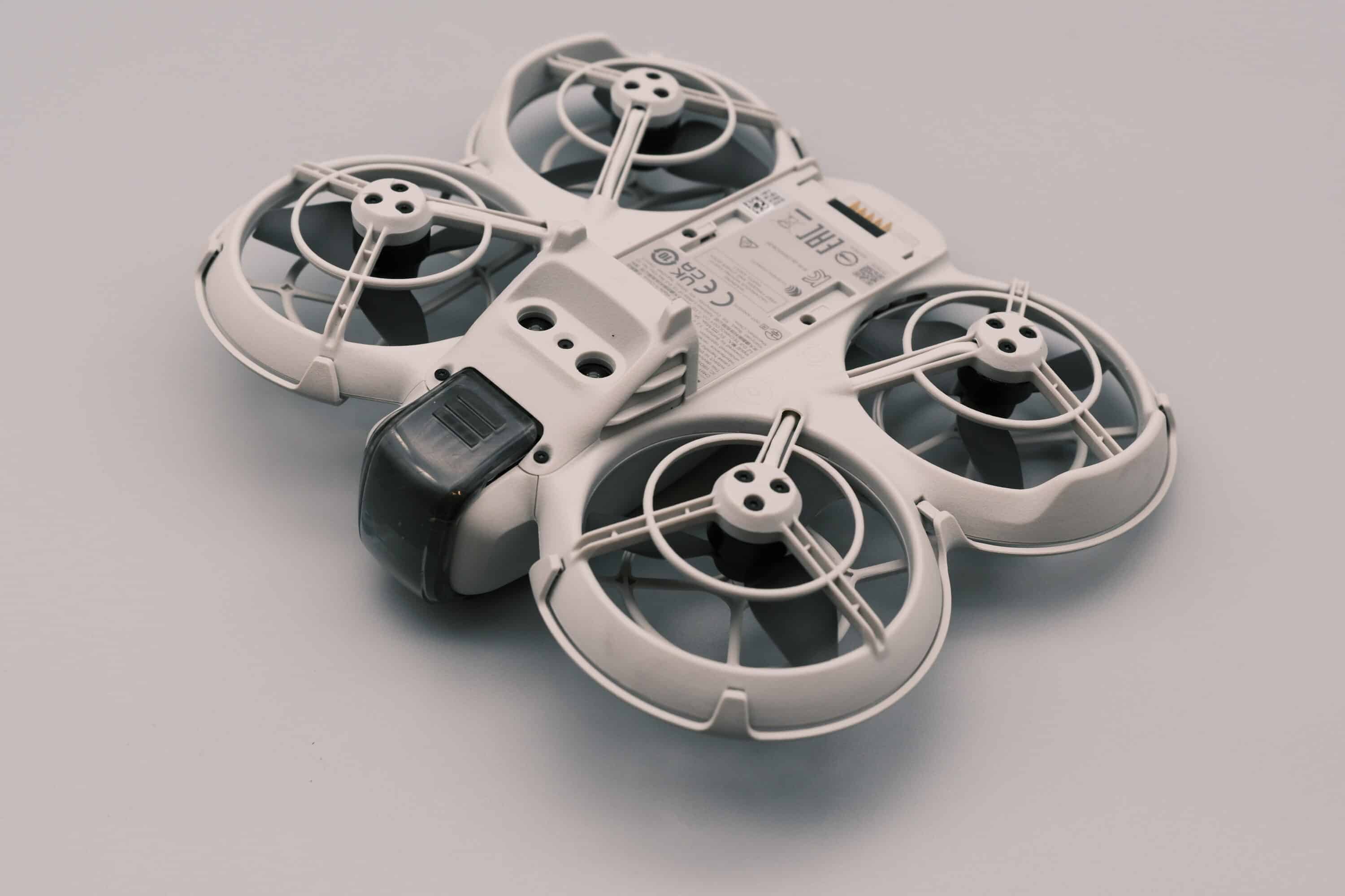 The drone also achieves this thanks to its gray plastic housing, which is kept very simple. No question: the Neo doesn’t feel really robust, but the design and workmanship fulfill their purpose. The design is somewhat reminiscent of the manufacturer’s Avata 2, with the difference that the DJI Neo is noticeably smaller and the rotors are fully protected – so nothing can happen here, even to the most incompetent laymen.