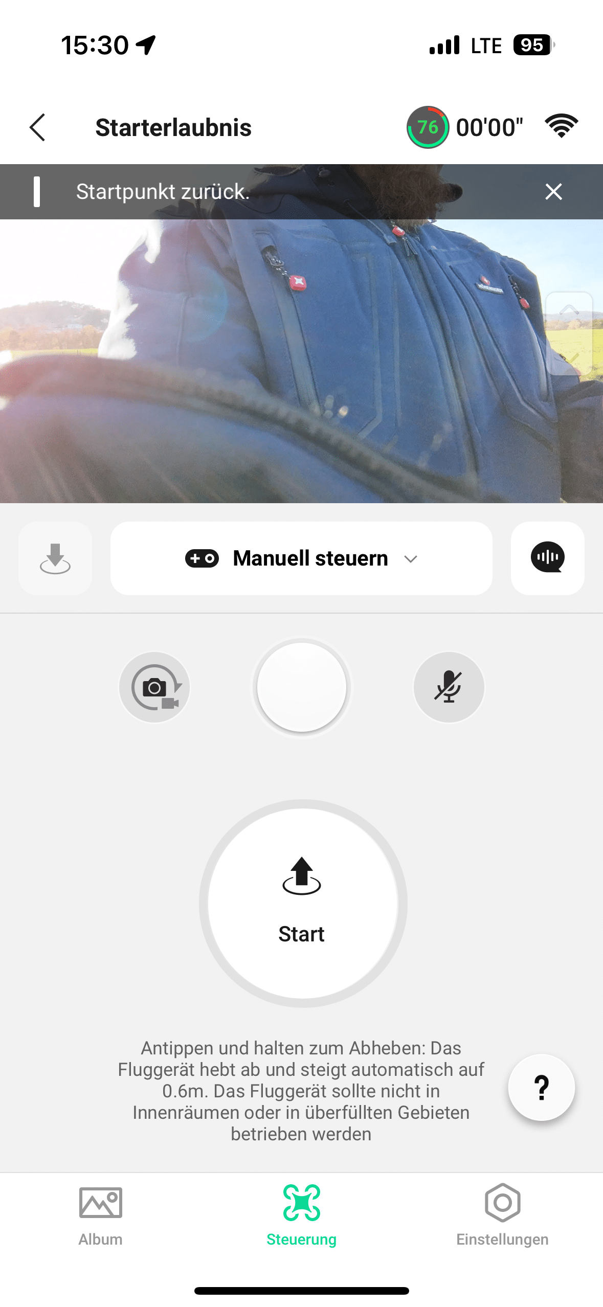 There are also three different flight modes to choose from, which differ mainly in terms of climb, descent and maximum horizontal speed: In sport mode, the DJI Neo reaches up to 8 m/s horizontal speed, in normal mode it is still 6 m/s. The third option is the slower cinematic mode, which is particularly suitable for cinematic shots.