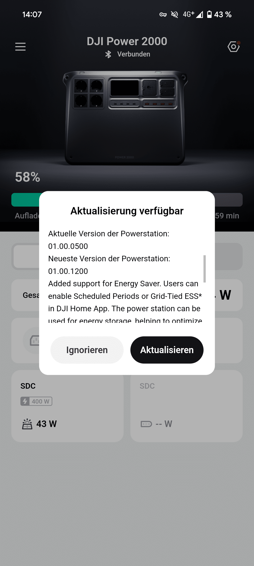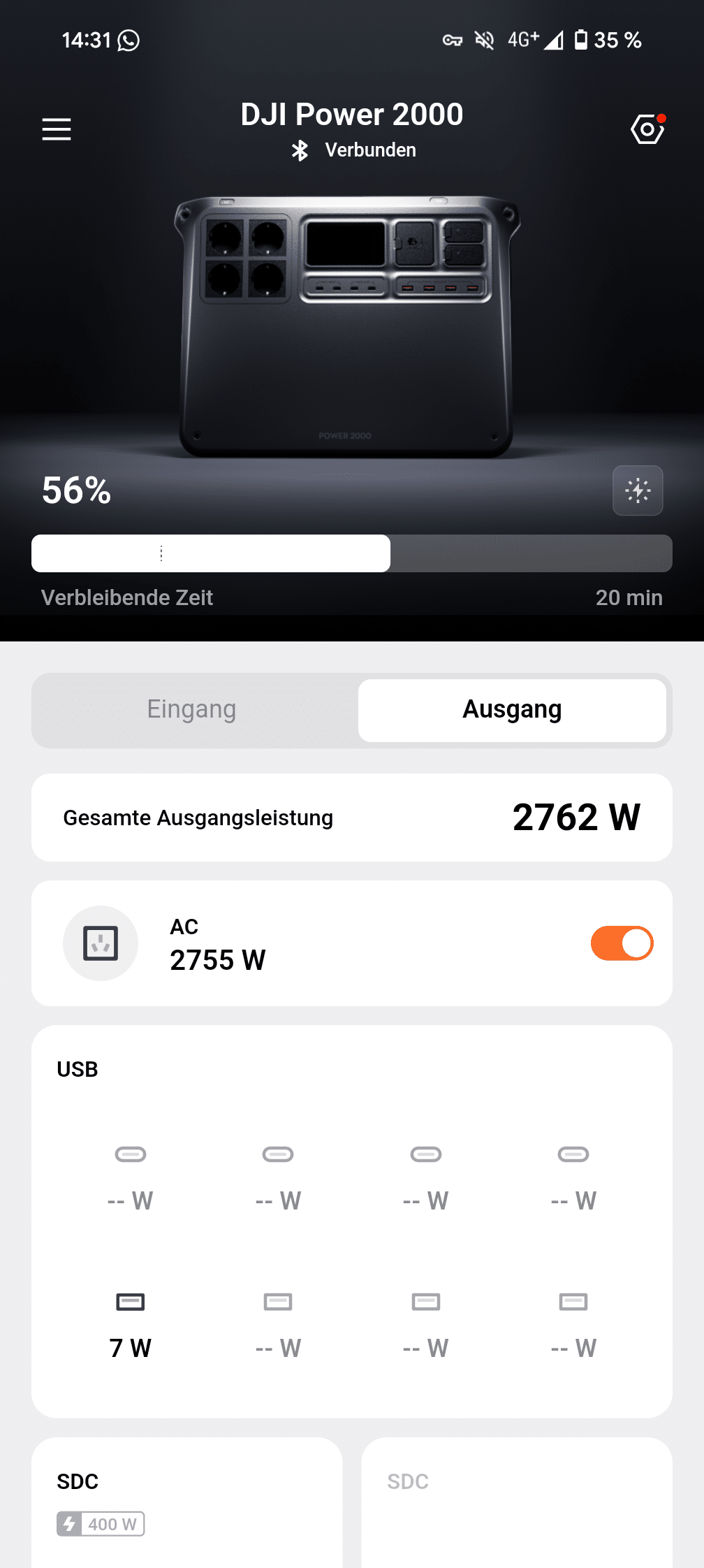 The DJI Home app is not just a nice addition to the Power 2000, but the actual control center. The connection runs directly via integrated Bluetooth, so an extra dongle is no longer necessary as with the Power 1000. In the app, you can see the current status in real time and adjust important parameters. These include