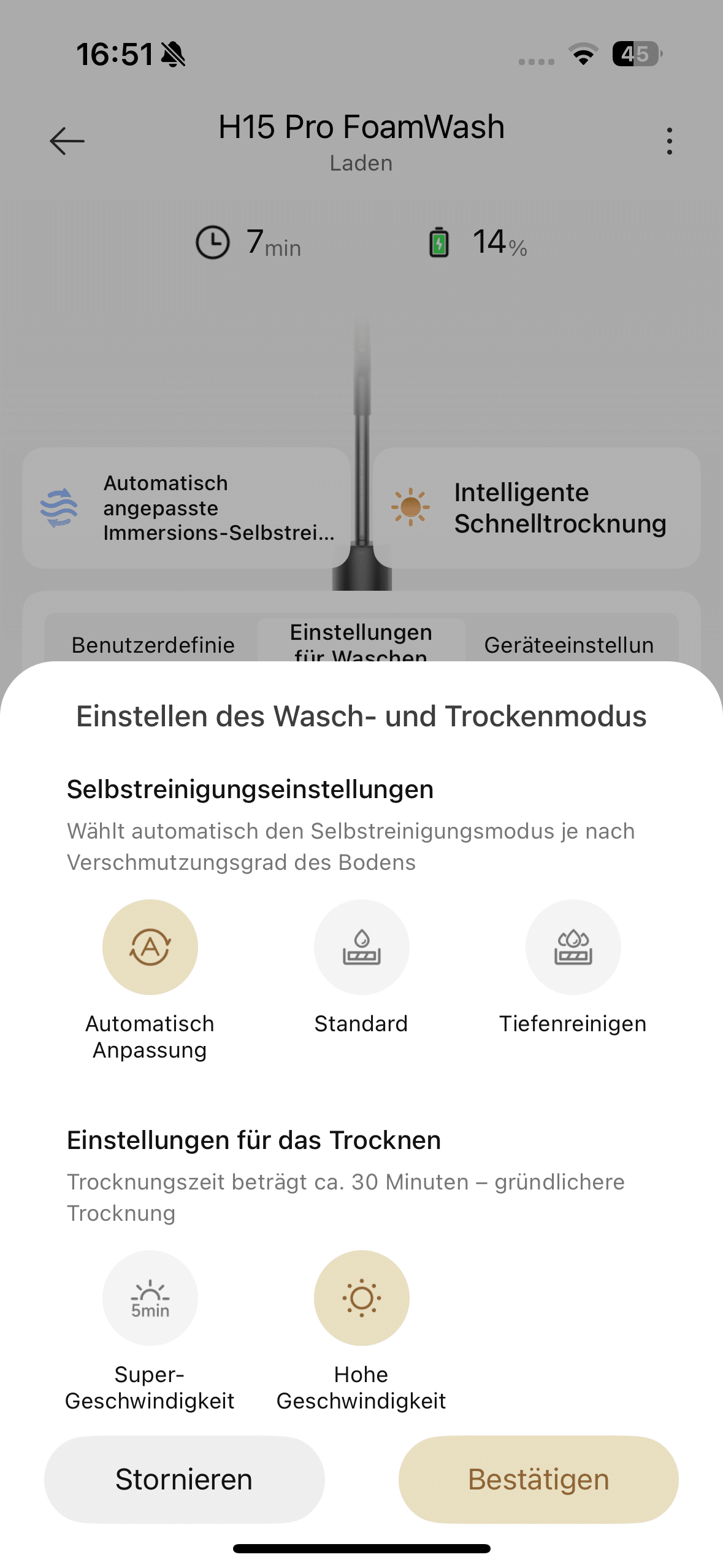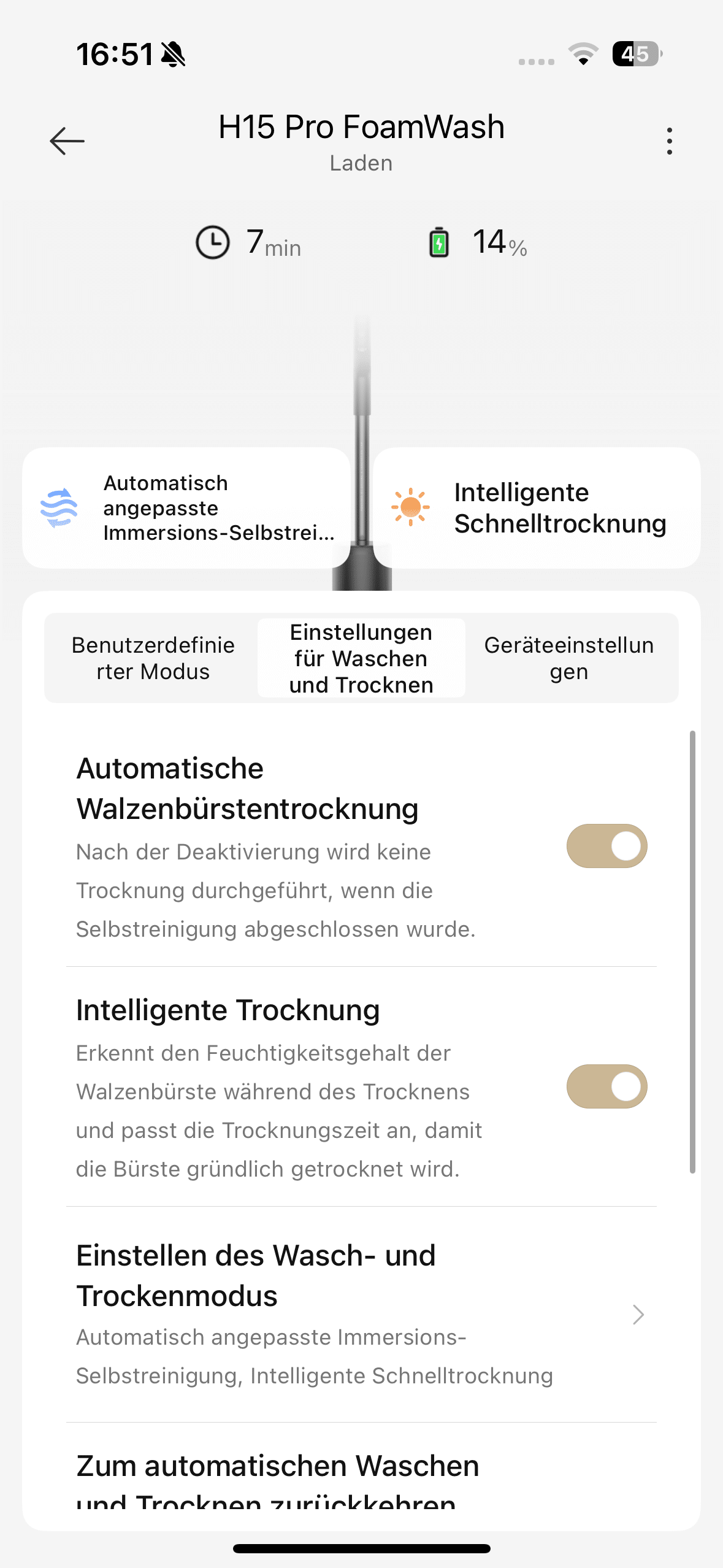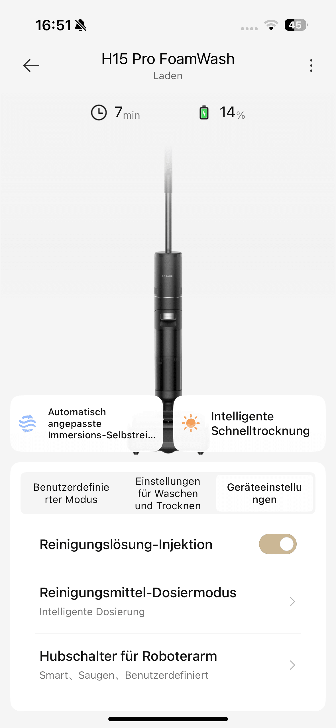 When it comes to robot hoovers, the Dreame Home app is a prime example of a good overview and setting options. Even though an app solution for vacuum cleaners is more of a gimmick than an essential feature, Dreame also offers app support for its H15 Pro FoamWash. Here you can not only view cleaning statistics.