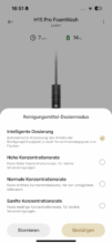 If these requirements are met, the self-cleaning function will start. You can adjust the intensity of this in the app. I left it in Smart mode. This adjusts the temperature of the hot water and the amount of detergent according to how dirty the vacuum cleaner is found to be. Up to 100°C is possible here.