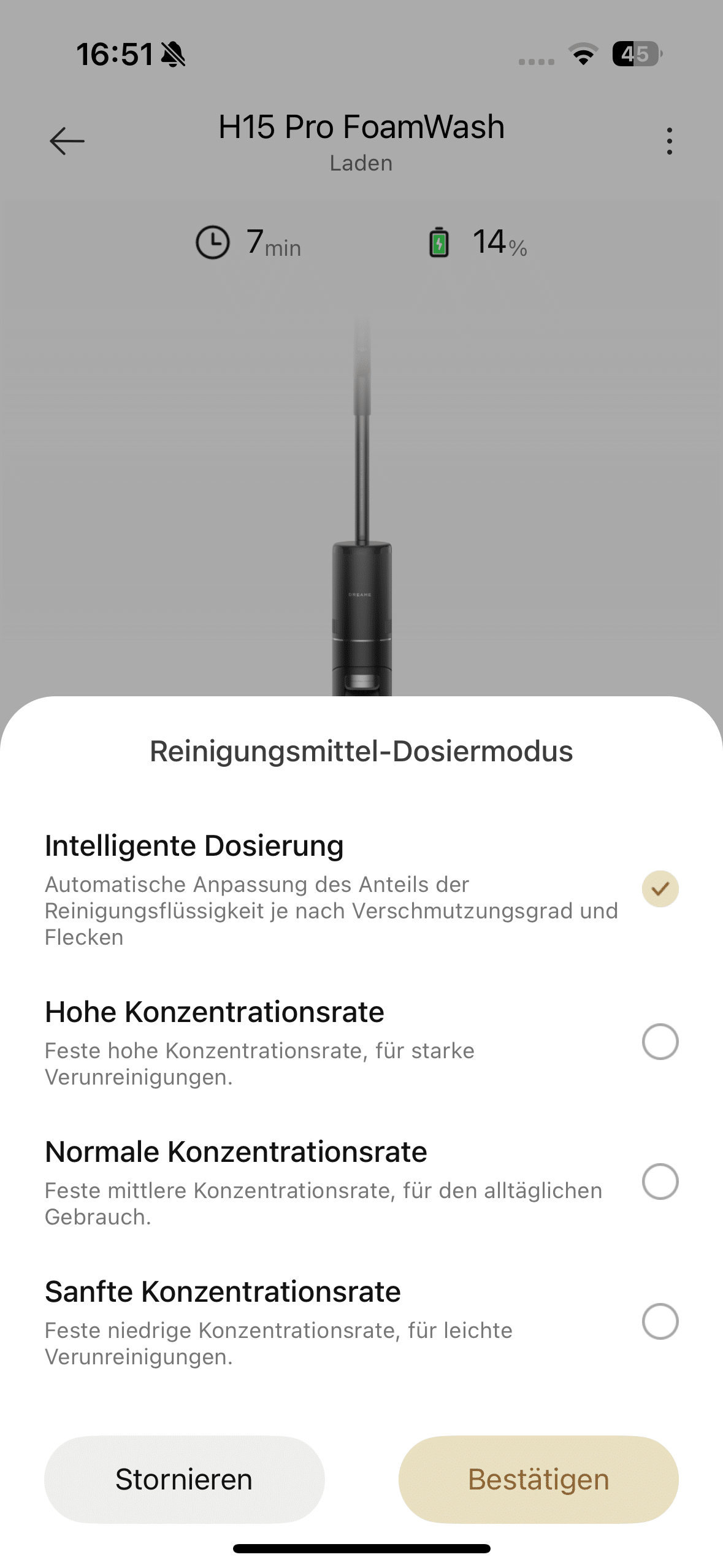 It is also possible to fine-tune the rubber lip at the front in the app. You can also set the dosage of cleaning agent. The app therefore offers many customization options. Personally, I could do without it, as the vacuum cleaner is already excellently configured ex works, but as we all know, having is better than needing.