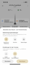 You can also make settings on the appliance. For example, you can adjust the details of the self-cleaning function here. This includes the temperature and duration of the hot air drying process. You can also customize a user-defined mode according to your wishes. You can determine the suction power and water flow rate.
