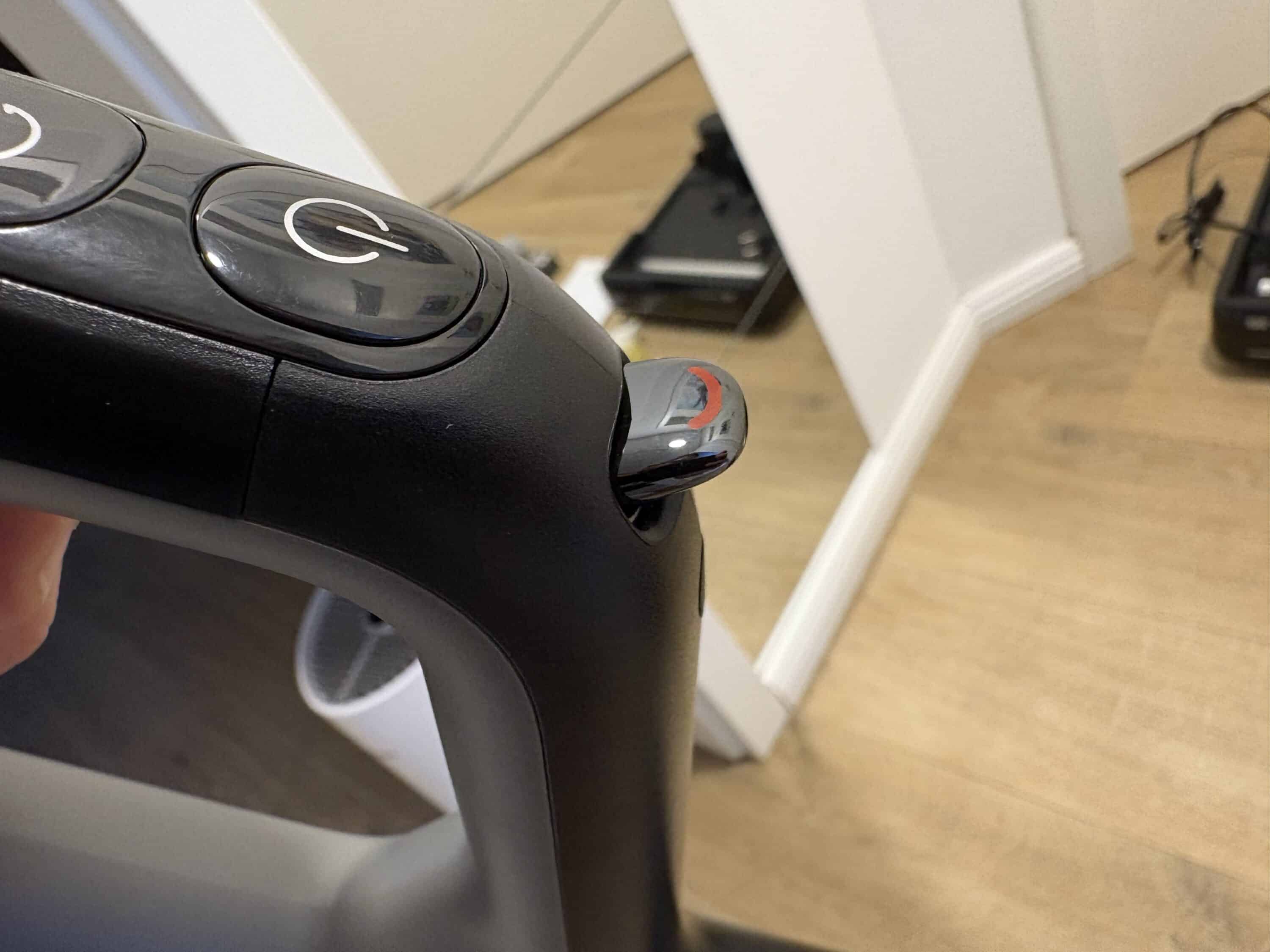 This is where the controls are located, which you can easily reach with your thumb during cleaning. The handpiece ends in the motor unit of the vacuum cleaner. Not only is the motor located here, but also the dirty water tank. Dreame has also placed a display in the upper area that shows the most important parameters.