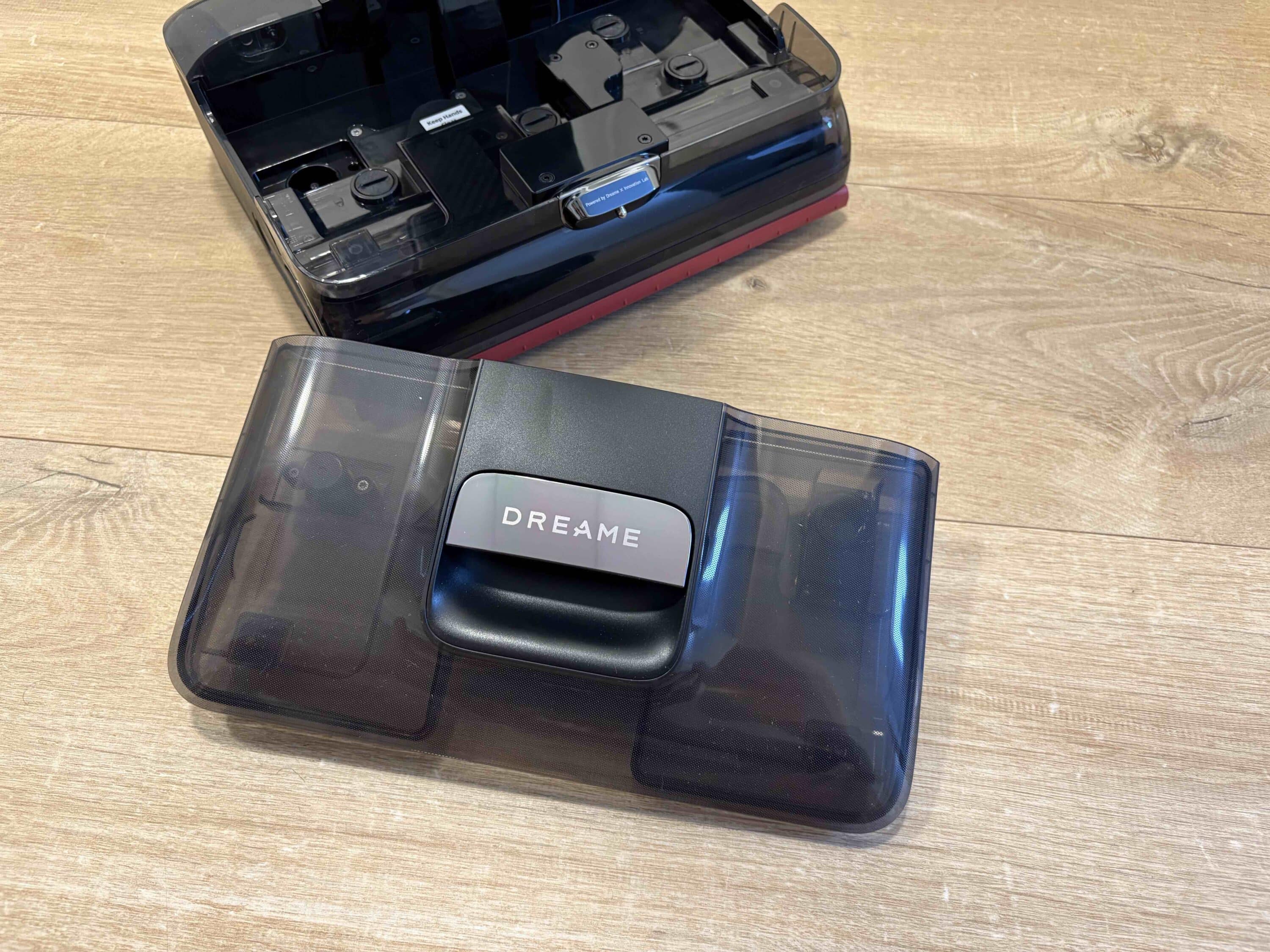 This is used to charge the battery and for self-cleaning. A power socket is required to plug in the necessary mains plug. While the vacuum cleaner’s battery is charging, you should fill the fresh water and detergent tanks. The Dreame is then ready for use.