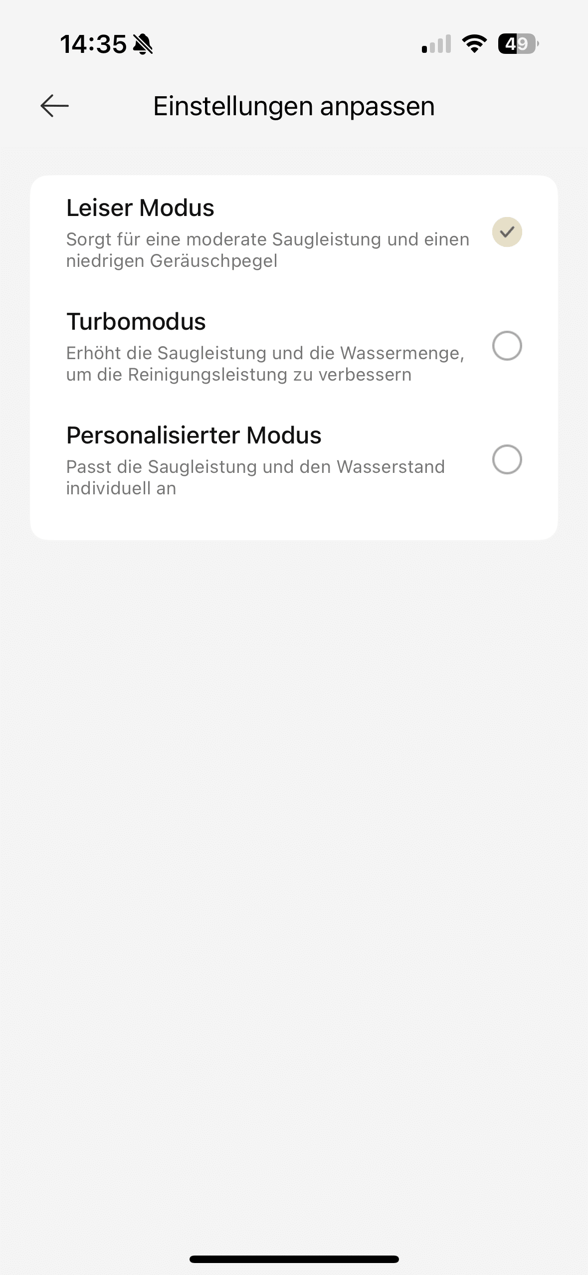The Dreame offers you a total of five different cleaning modes. In the test, we mainly used the Auto mode. Here, the vacuum cleaner automatically adjusts the suction and mopping power to the level of dirt measured by the dirt sensor. There is also quiet mode as the lowest level and turbo mode for maximum performance.