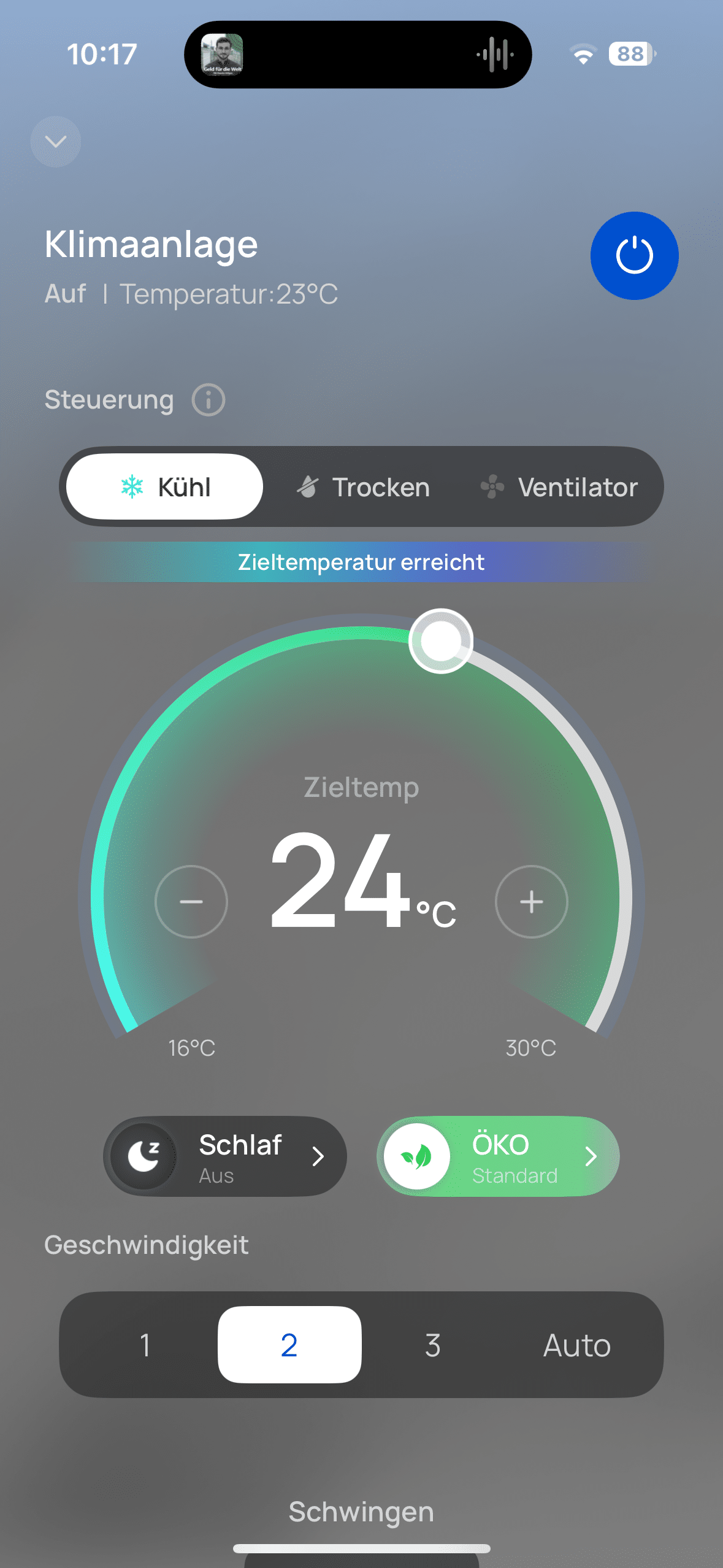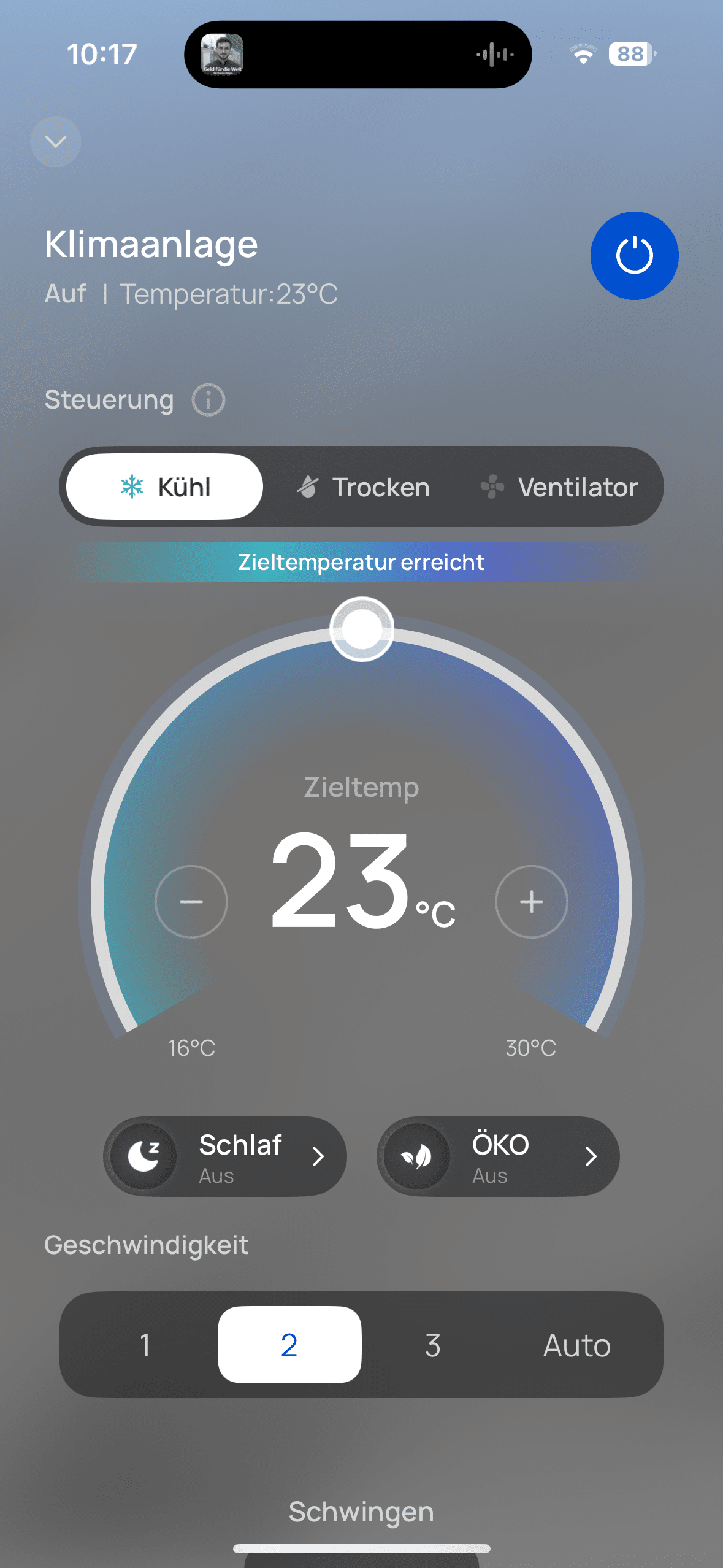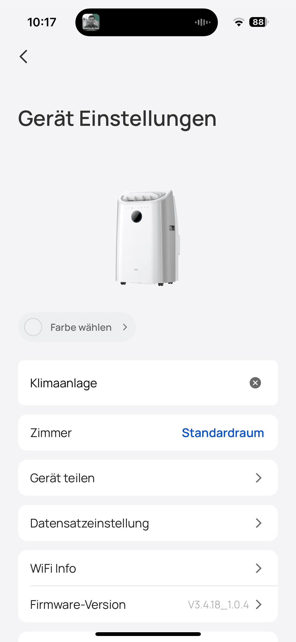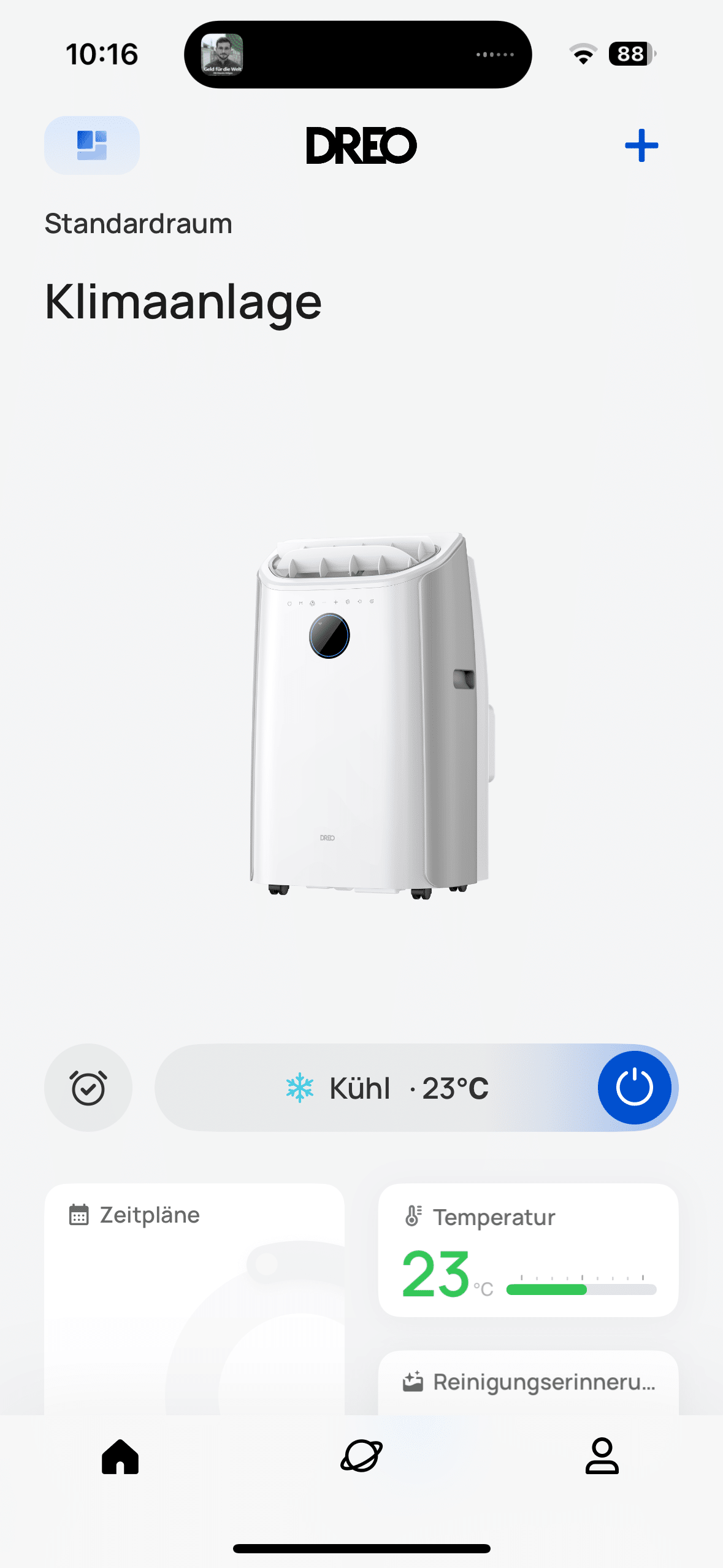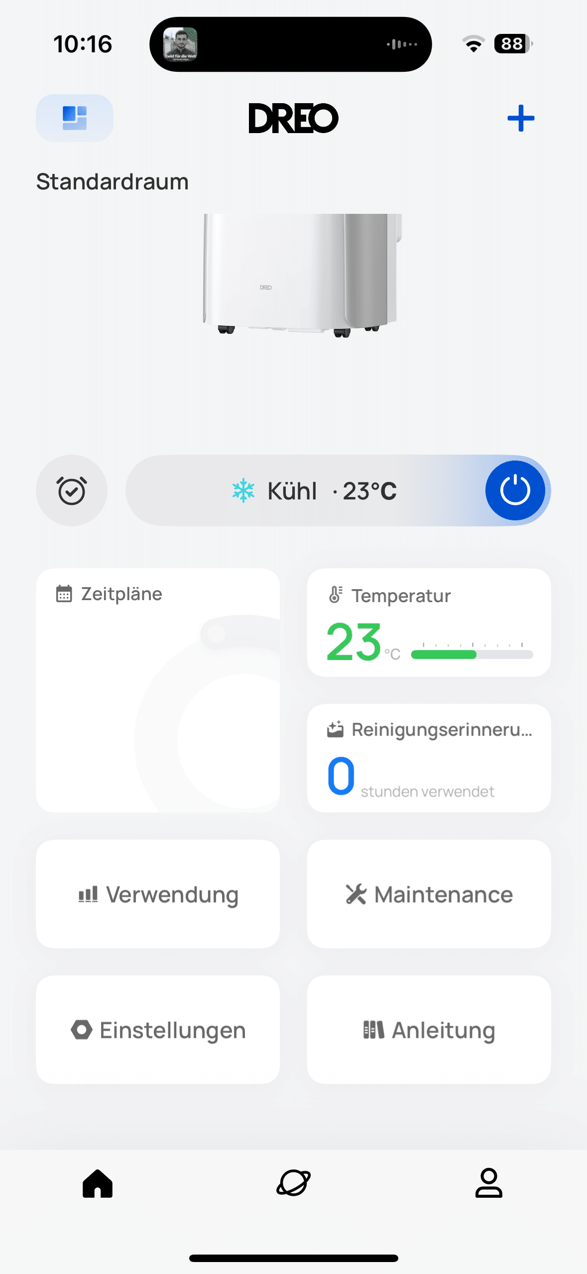 Thanks to the display on the front of the AC516S, you can always see the current status of the air conditioner. The focus is of course on the current target temperature. But you can also see other things here, such as the active connection to the Wi-Fi network. And you need this to be able to monitor and control the air conditioner from outside the home. This works via the DREO app. Once connected, you can make various settings here. And there really are a lot of them.