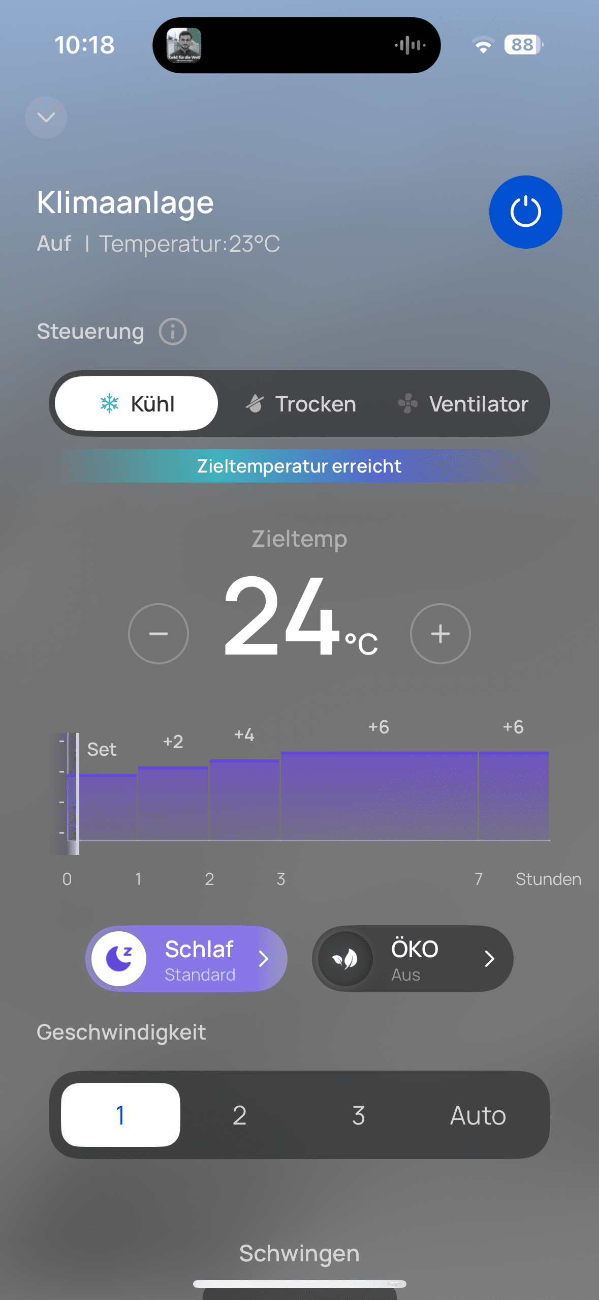 It only took me just under a quarter of an hour to cool the entire upper floor with a floor area of around 40 m² down to a pleasant 24°C. The bedroom, where the air conditioning unit was located, cooled down to the desired temperature within two to three minutes. The 24°C I achieved corresponds to the air conditioner’s Eco mode. If you want less, you can of course also set this comfortably.