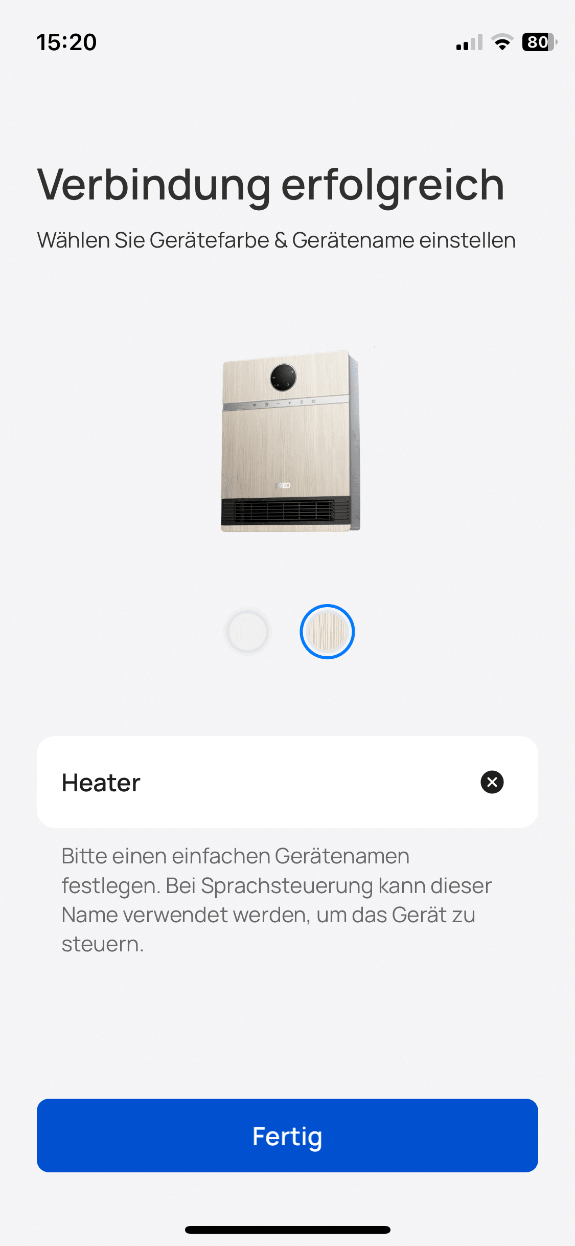 However, if you want that smart home feeling, the next step is to install the DREO app. Commissioning via the app is similarly quick and straightforward. First, your smartphone searches for the smart heating and then requests contact with the home network. Once you have given your approval, the heating is already in the network and can be conveniently operated via the app.