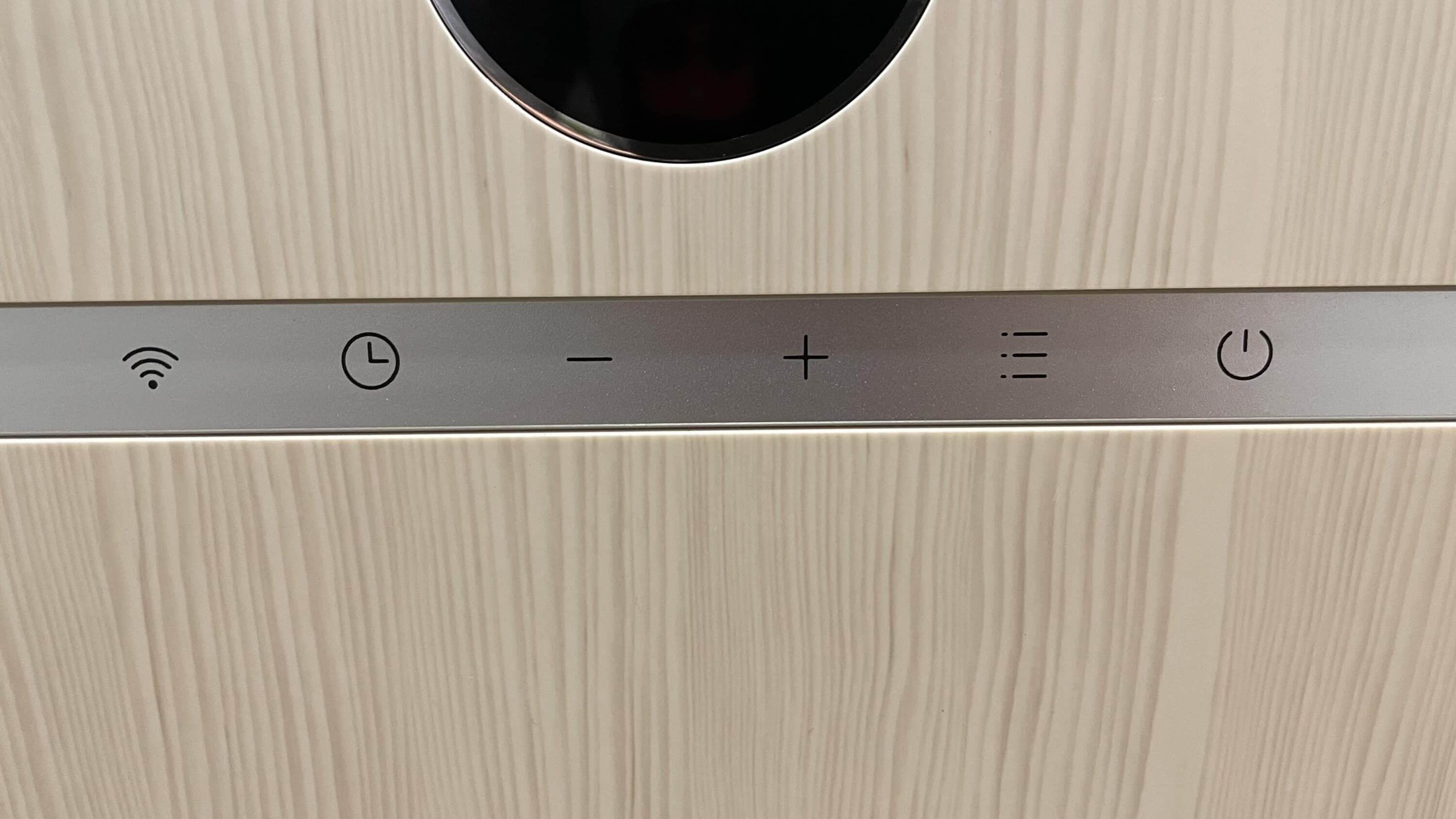 Below the display is a control bar, which is easily recognizable with its chic brushed aluminium look. Here, for example, the temperature can be adjusted to + or – at the touch of a button. You can also set the timer here, establish WiFi connections or simply switch the heating on and off. Alternatively, you can also use the included remote control. Voice control via Amazon Alexa or the Google Assistant is also possible.