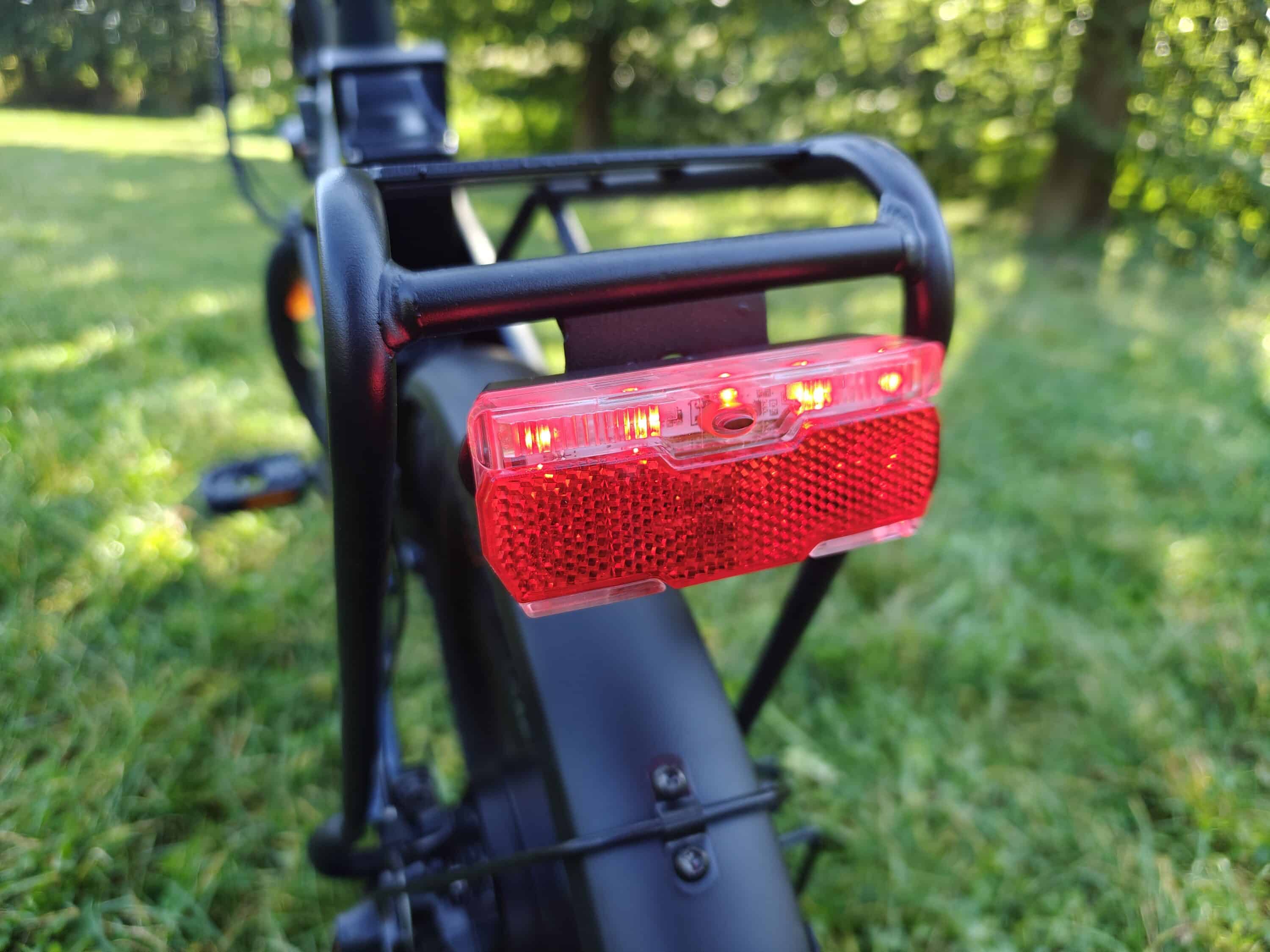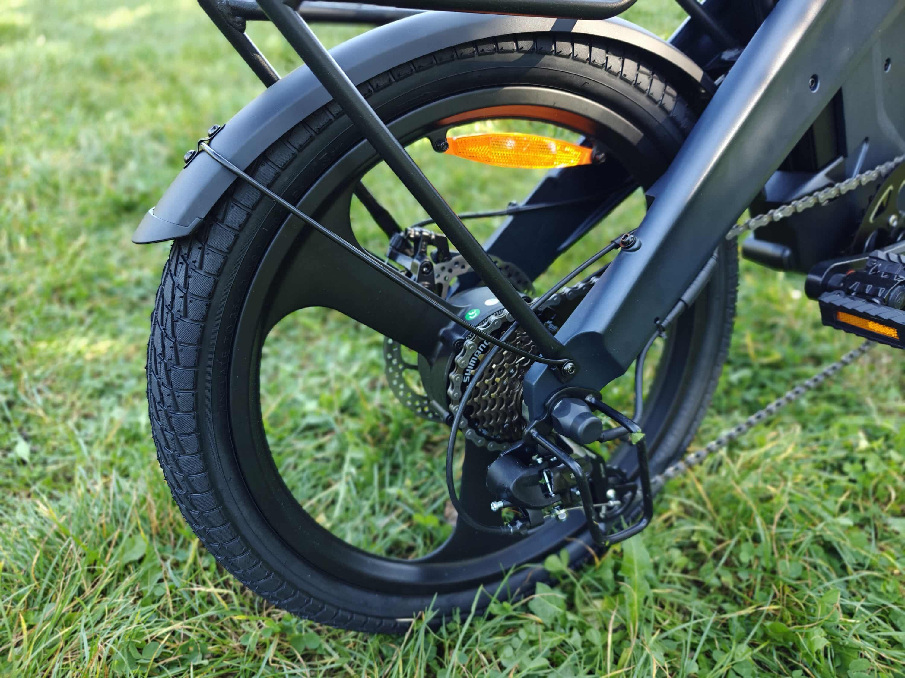 The thick 20-inch tires provide a pleasant grip, even on wet road surfaces or somewhat rougher paths. However, you shouldn’t take the T1 onto very rough terrain. The brakes also do a great job of bringing the folding e-bike to a halt quickly and safely, even in wet conditions.