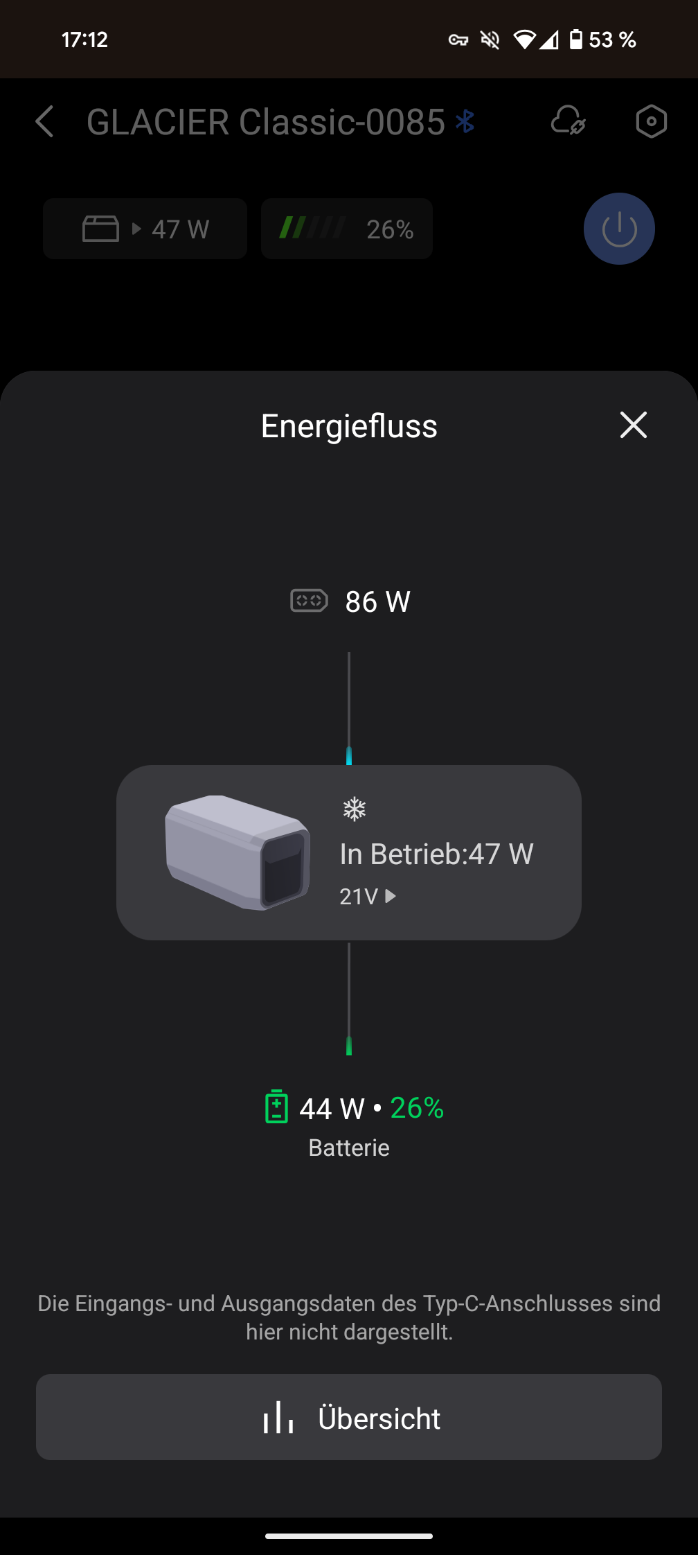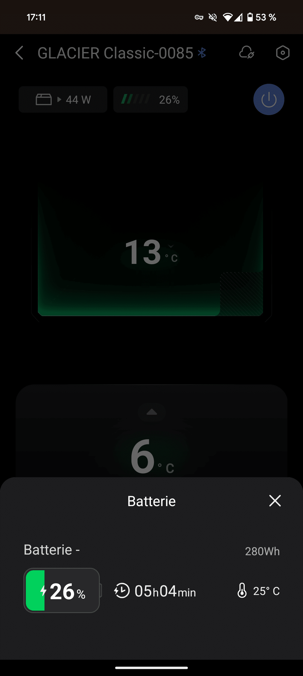 In our test, this runtime of the EcoFlow Glacier Classic 35L is sufficient for about one day of intensive use or one and a half days of economical use. If you want to be self-sufficient for an entire weekend, you will need to recharge the battery or carry a second one with you. A practical feature is that the energy storage unit can be removed and charged separately – useful if you have several units or want to charge them at home.