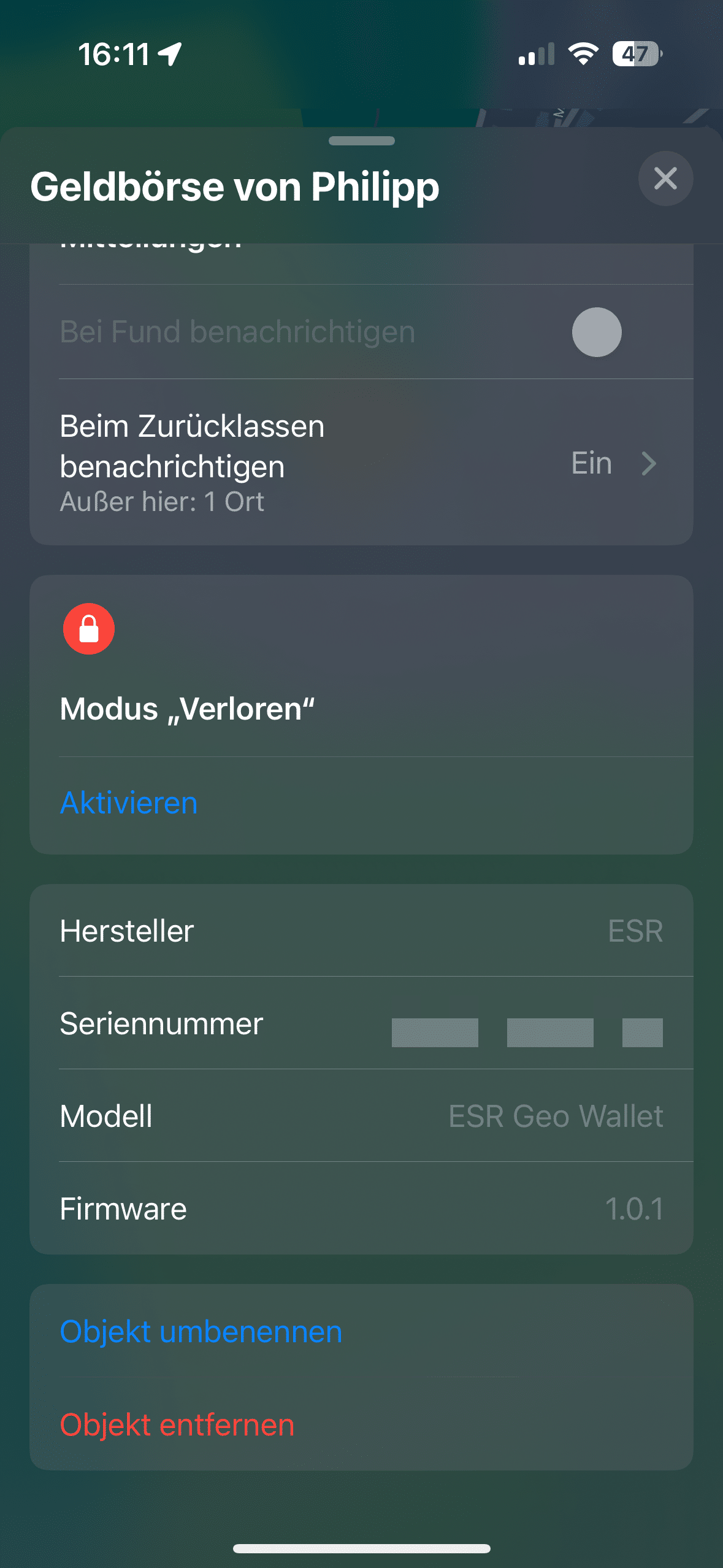 Shortly afterwards, the wallet is immediately found in the app and can be connected. The only disadvantage compared to an AirTag is the missing UWB chip. “Where is?” therefore only shows the approximate position of the wallet and does not lead directly to the object with centimeter precision via navigation.