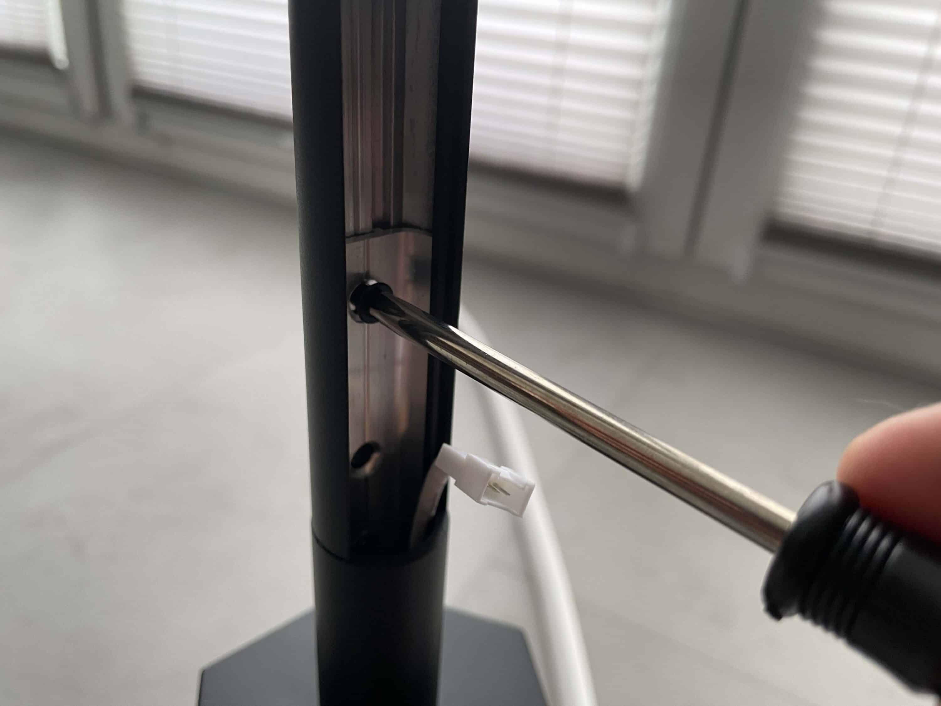 Once you have the kit in front of you, it is already clear that the assembly is not complex. Anker delivers the eufy Indoor Floor Lamp E10 in five parts. First you take the base. This is where the three extension rods are mounted. Really cool: The necessary tools are already included in the scope of delivery. Your toolbox can therefore remain closed.