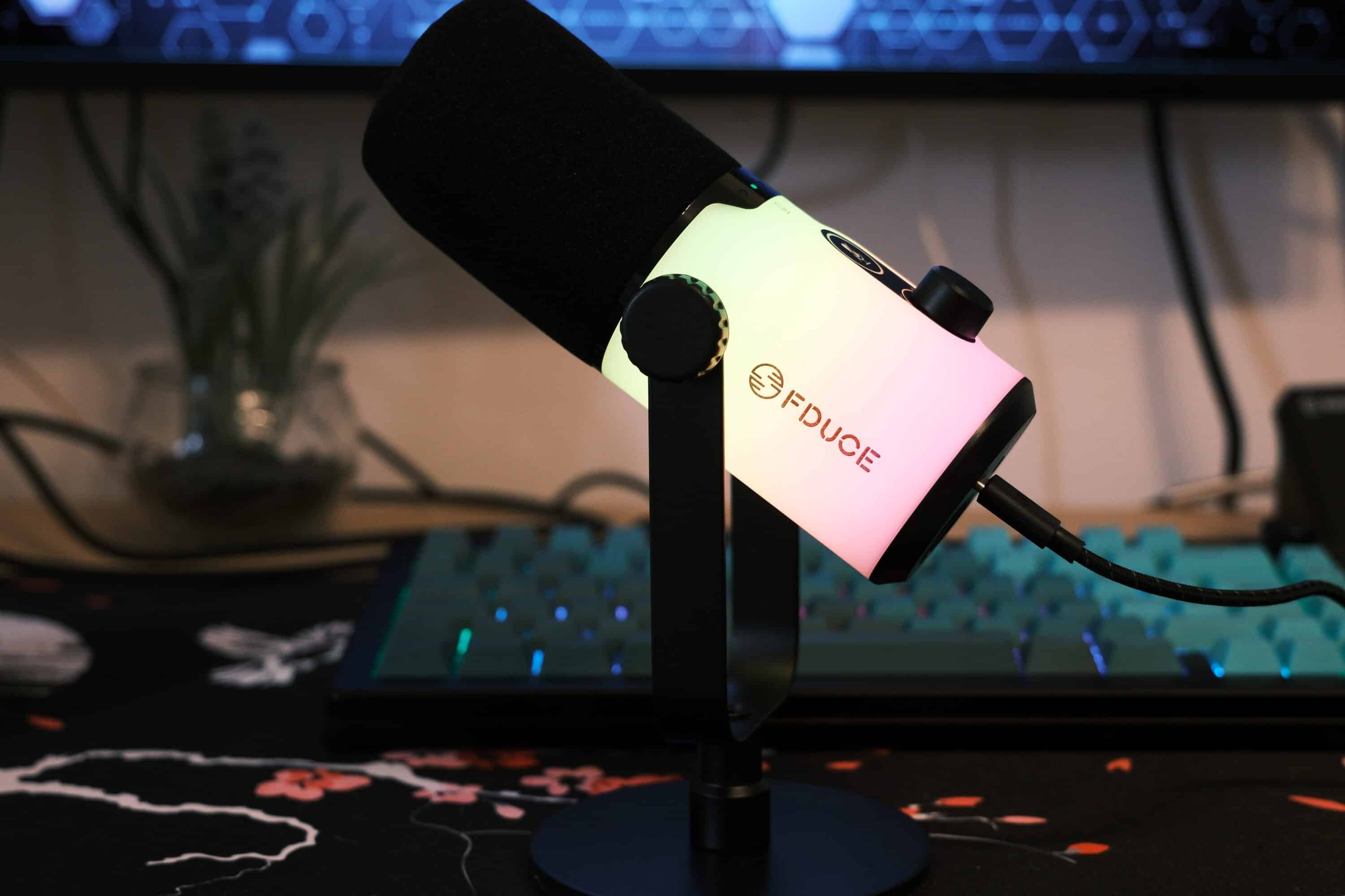 One highlight of the FDUCE D20 is undoubtedly the RGB lighting, which quickly explains the white body of the microphone. When connected via USB-C, it shines completely in bright colors.