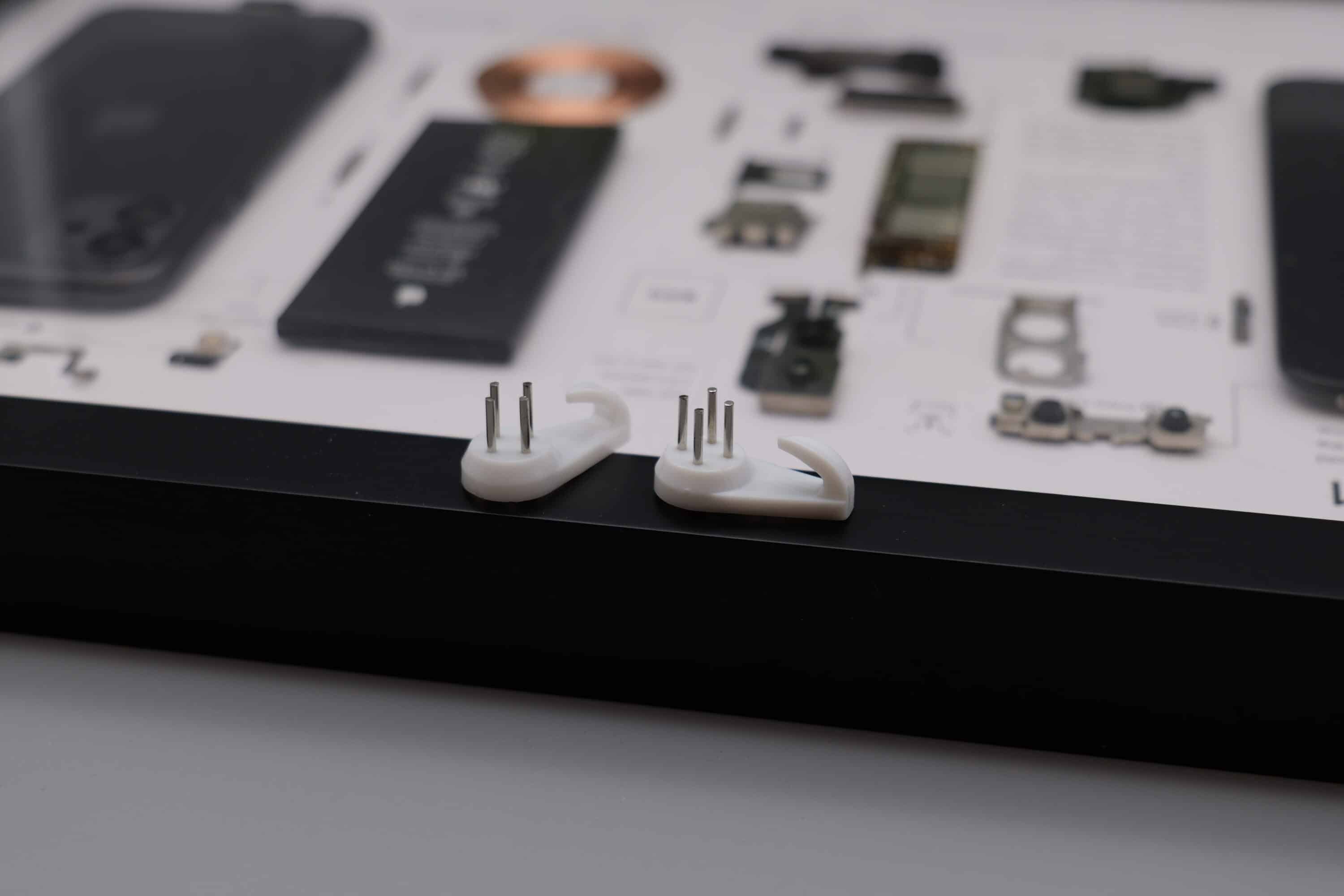 The opening via the hooks is relatively difficult and hardly possible without scratching the back. The scope of delivery also includes hooks with which the GridStudio Frames can be easily hung on the wall.
