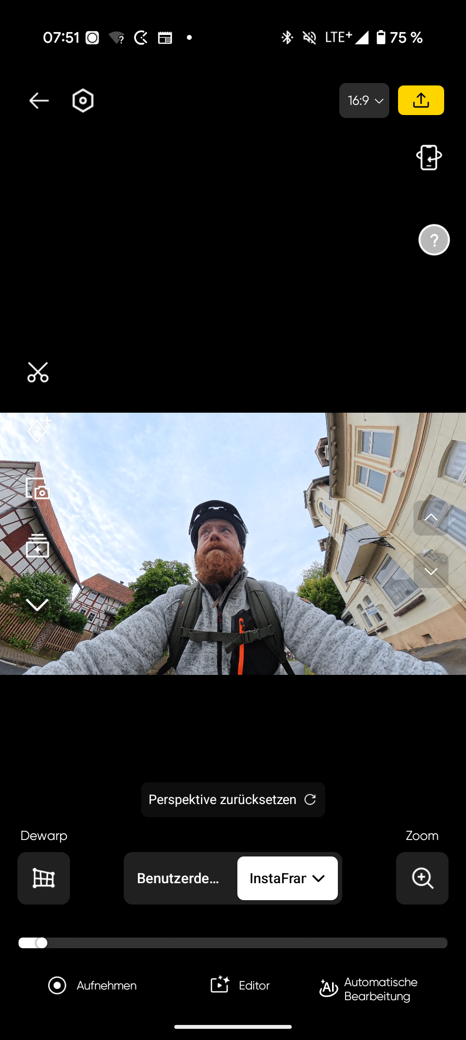 Conveniently, with InstaFrame you get the full 360-degree recordings in addition to the flat, ready-made videos, so you get two videos at once. Perfect for never missing a moment. However, there is a limitation in terms of resolution: 360-degree recordings are saved in a maximum of 5.7K, while the flat videos are saved in a maximum of 1080p – absolutely sufficient for social networks.