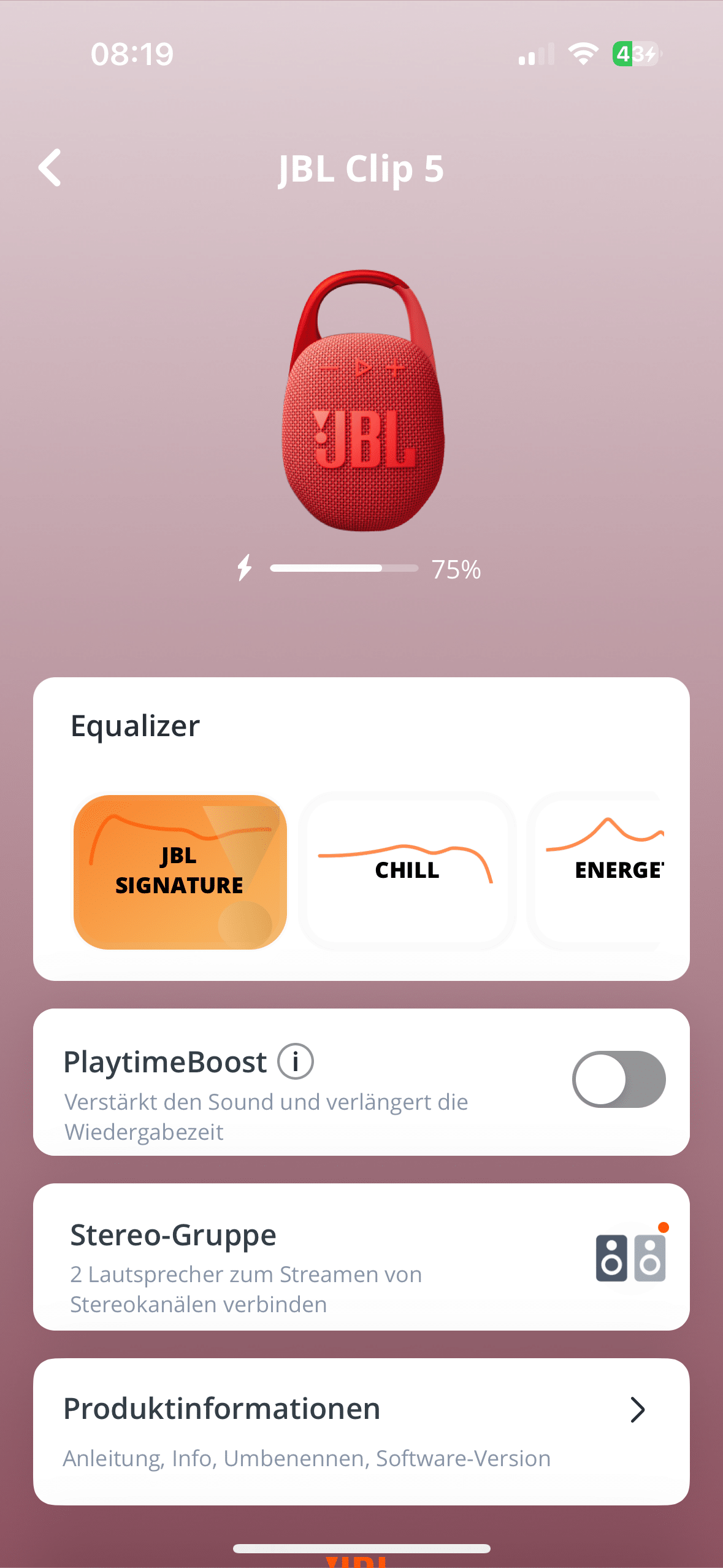JBL Portable is used as a companion app, but its range of functions is just as limited as that of the Go 4. At least there is now app support with equalizer and custom EQ – which was not the case with the predecessors.
