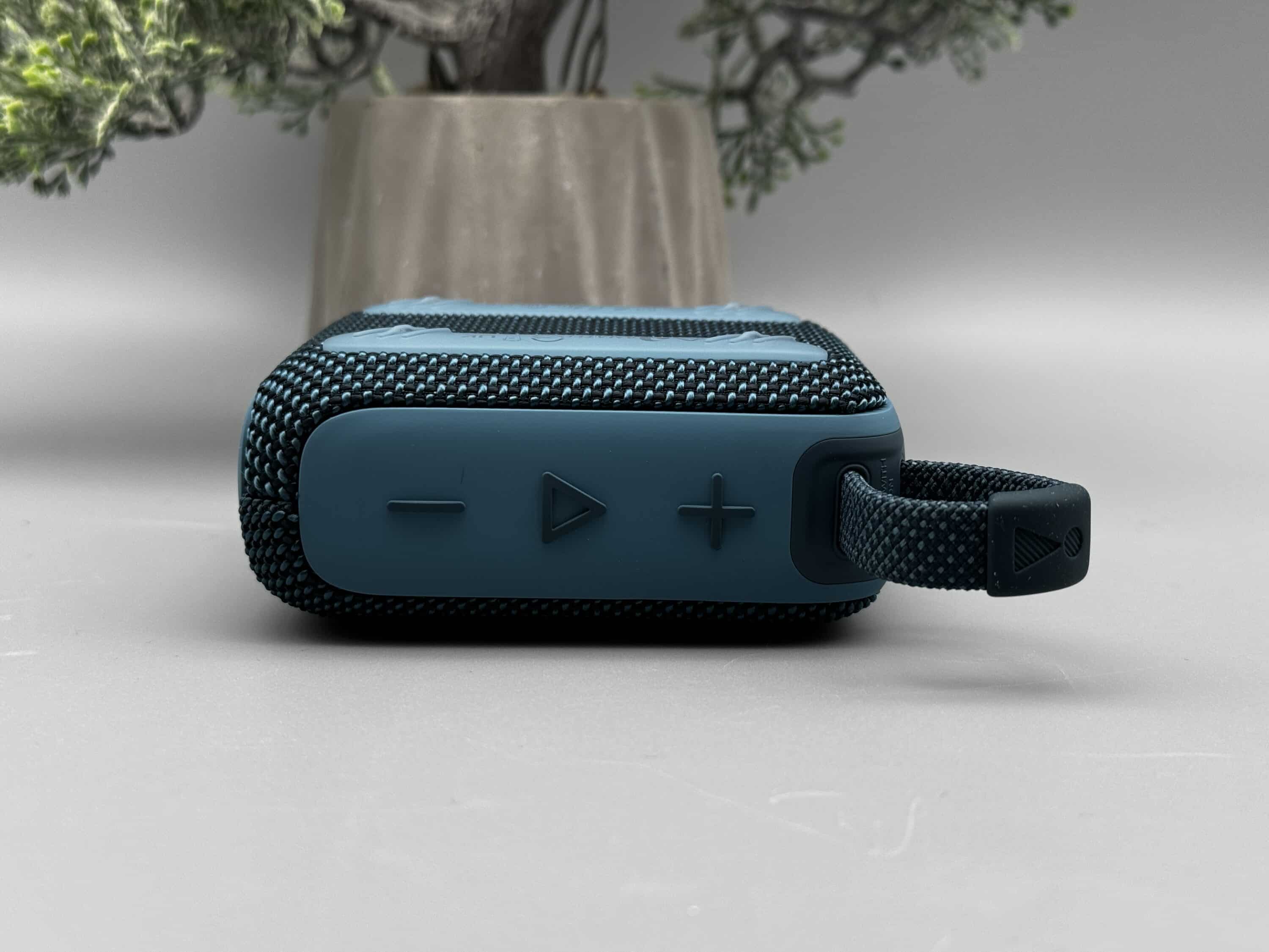 The basic controls are located on the top and left side, while a small carrying strap is located on the top right. Below this is the USB-C port to supply the Go 4 with power. The build quality is excellent and leaves nothing to be desired. The speaker is also protected against the ingress of water in accordance with IP67.