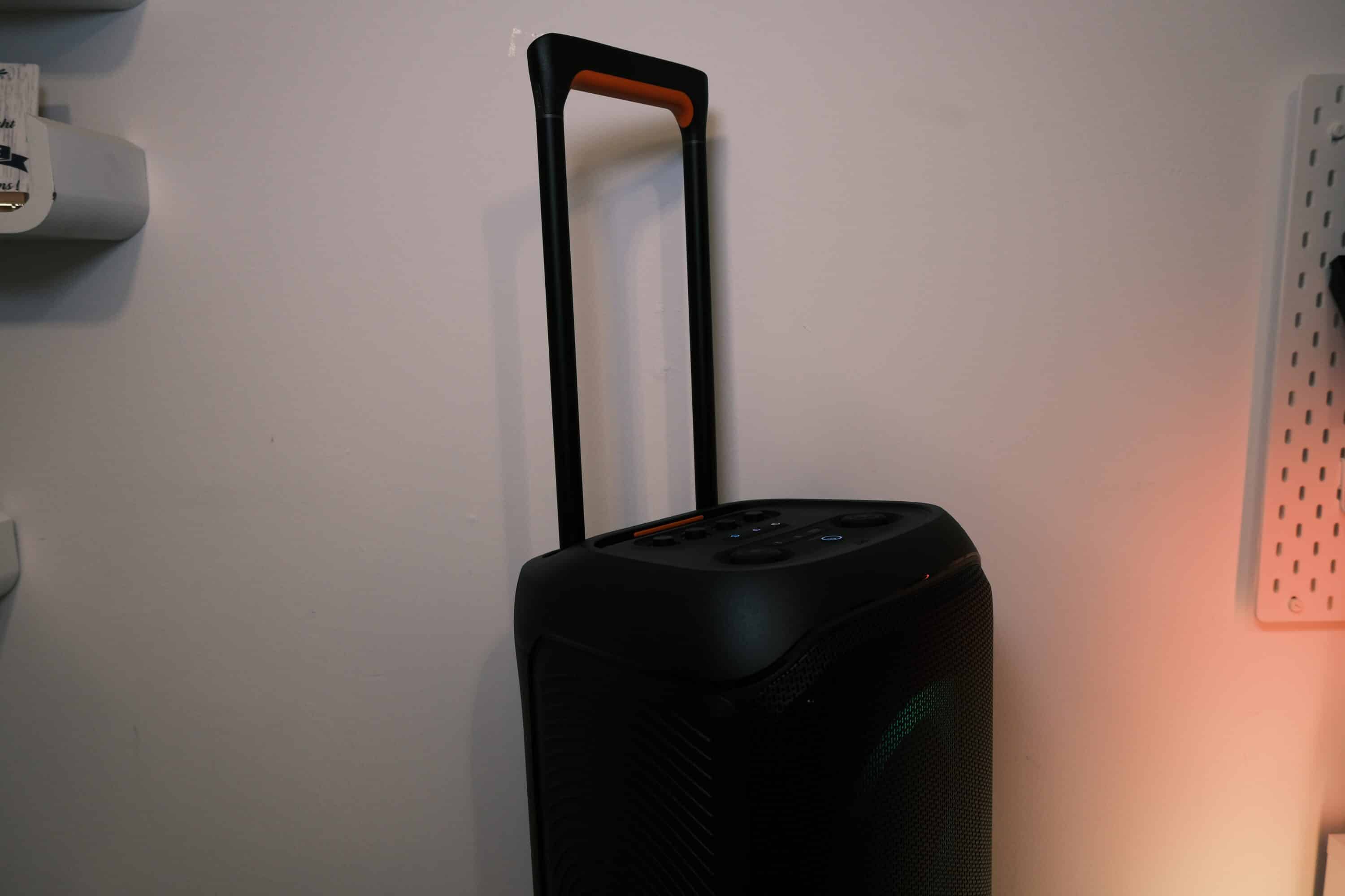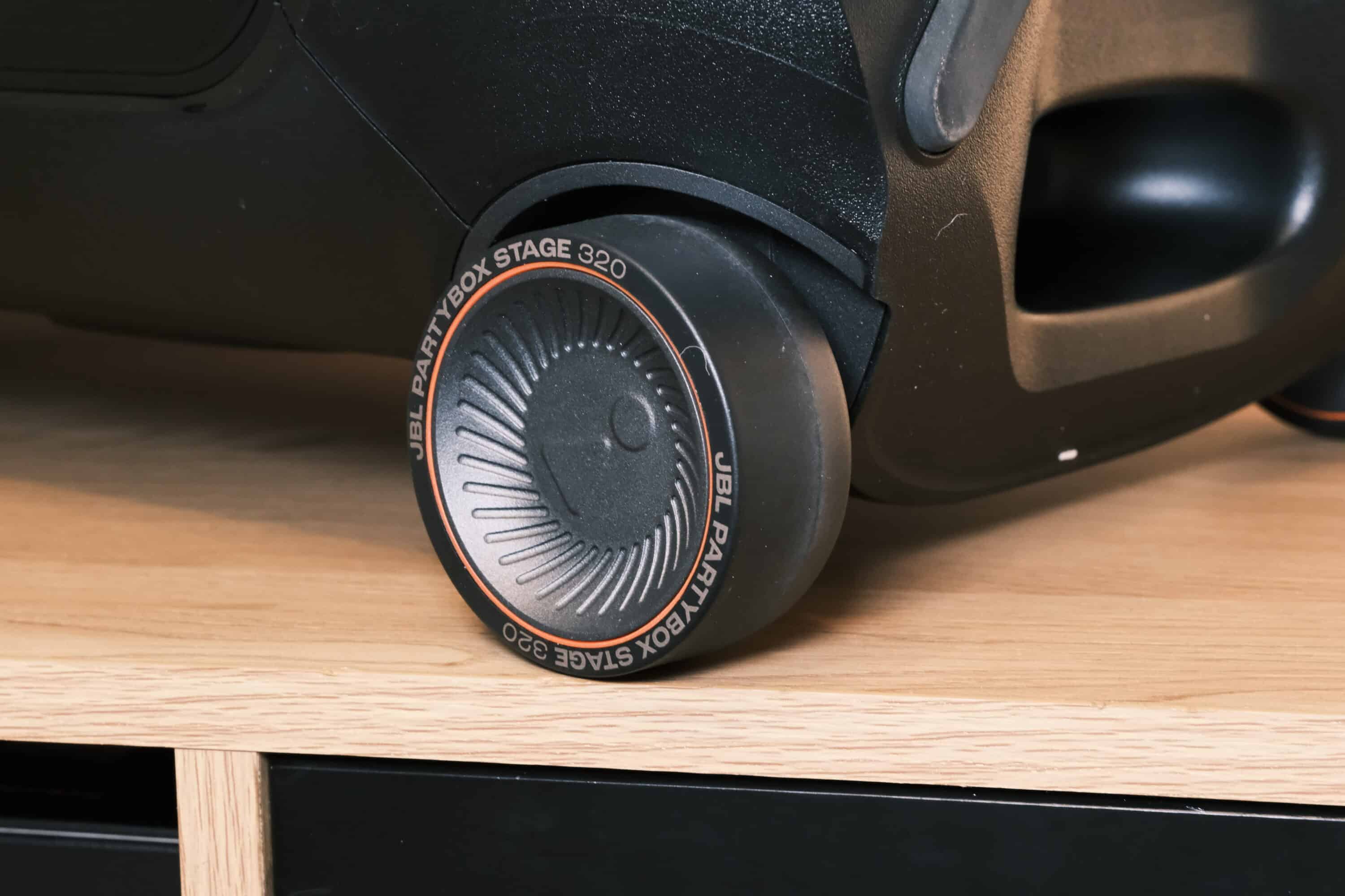 So that you can get the Stage 320 from A to B quickly without having to drag it around, JBL has given the Bluetooth speaker an extendable carrying handle on the top and castors on the underside to make it easy to move around.